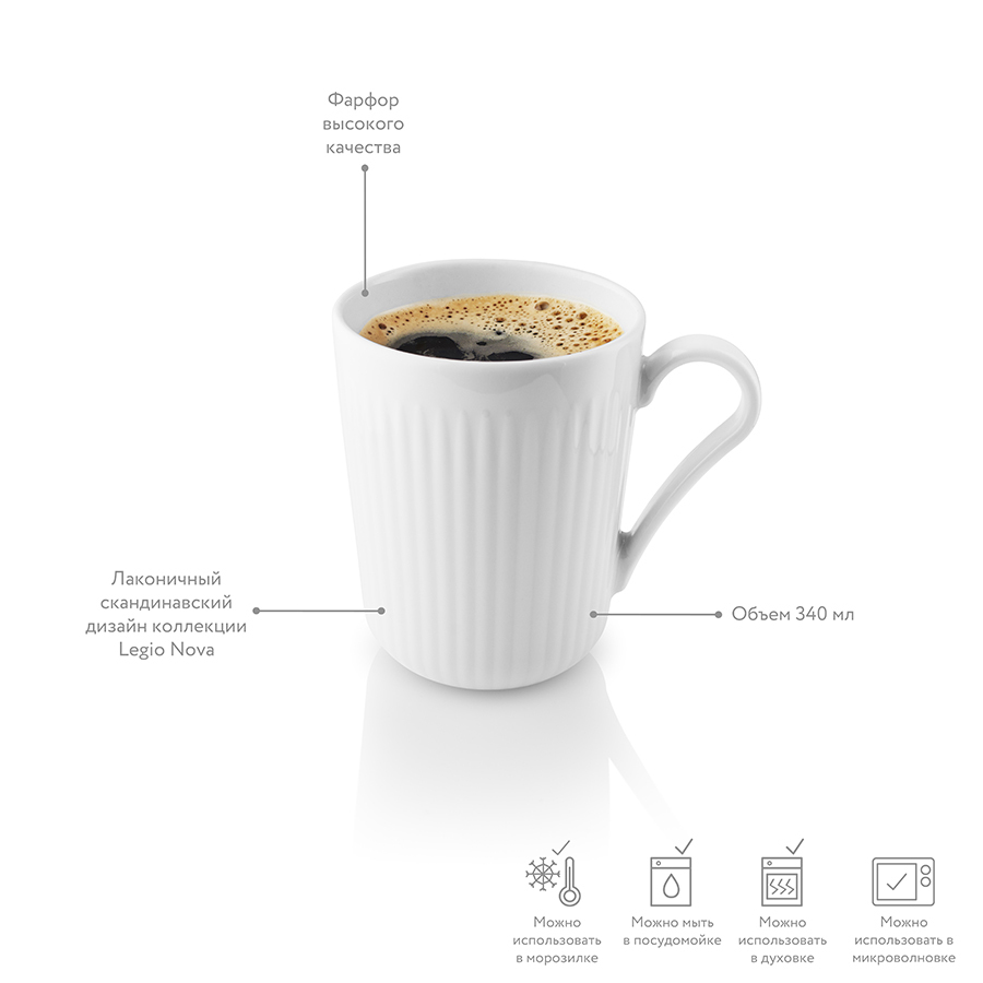 Объем посуды составляет 340 мл, благодаря чему она прекрасно подойдет для согревающего чая, теплого пунша, глинтвейна или ароматных кофейных напитков. Чашки выполнены из высококачественного фарфора. Благодаря плавной обтекаемой форме и изогнутой ручке чашки удобно держать в руке.