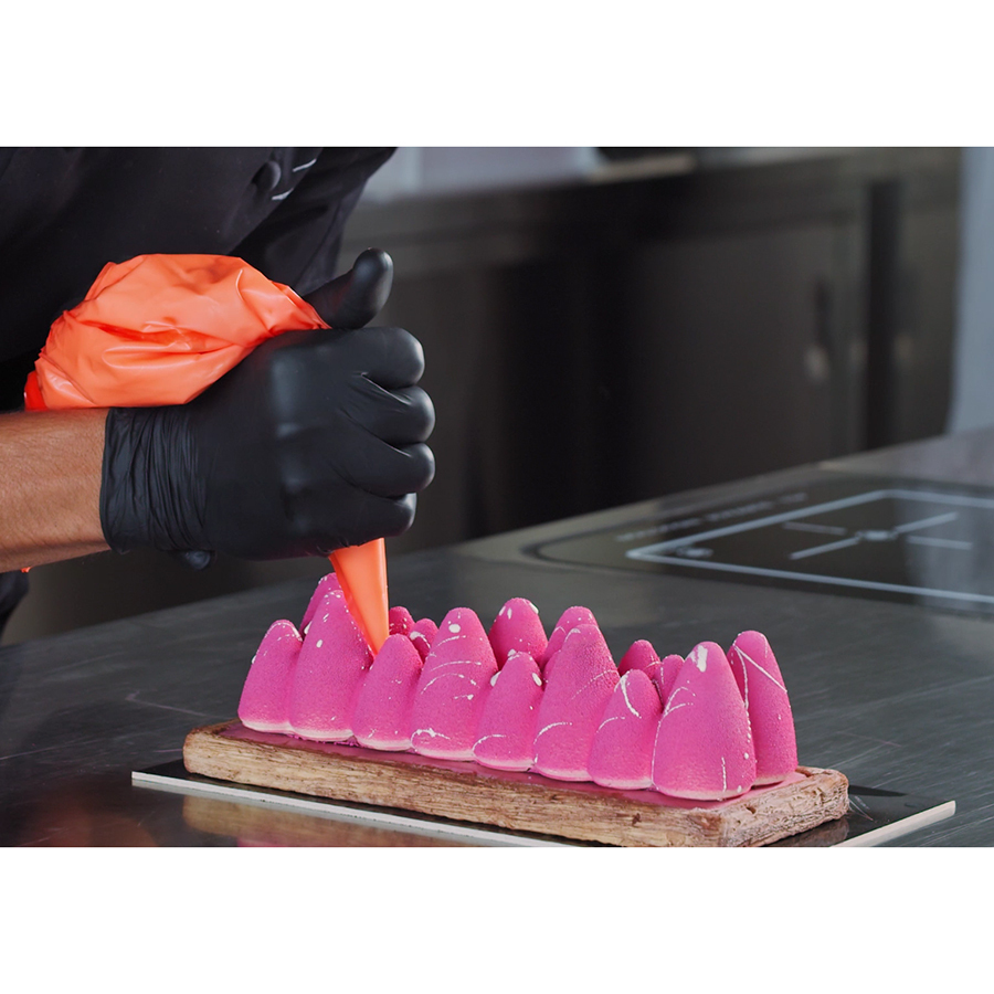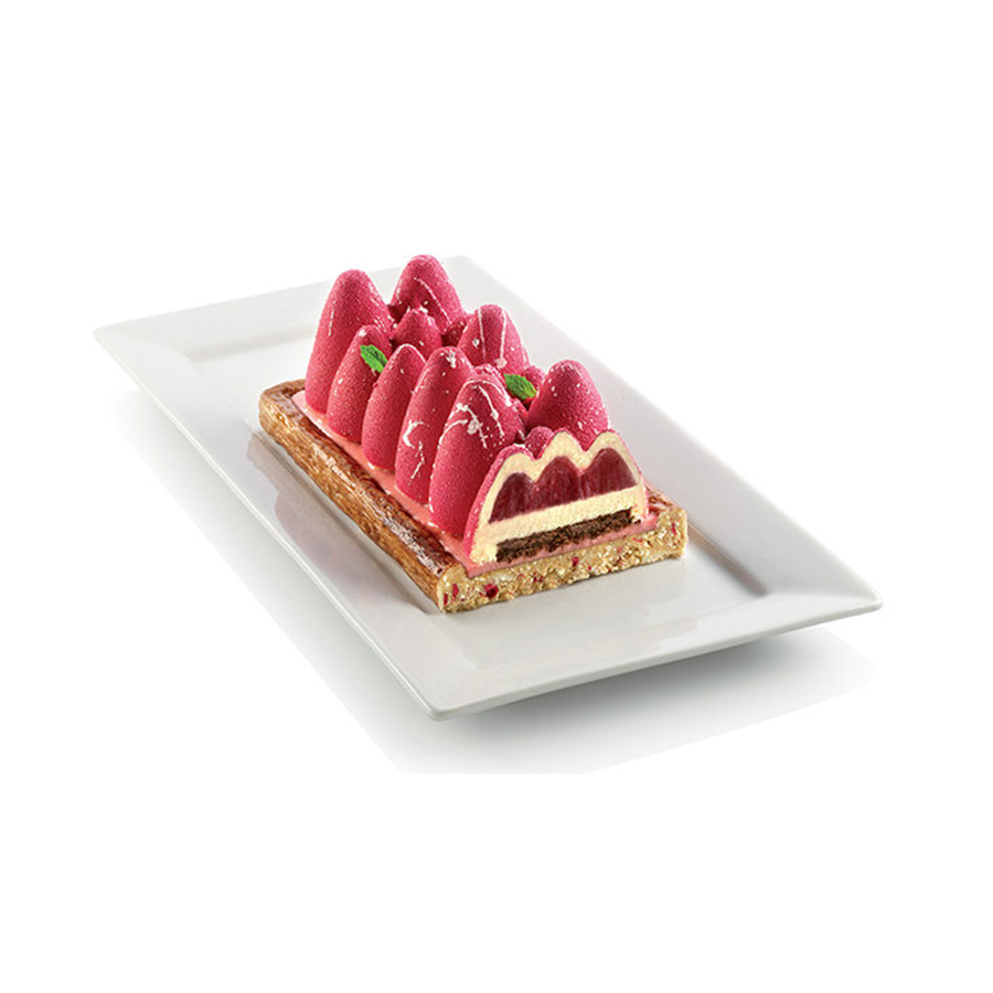 Набор включает два силиконовых элемента: форму для основы десерта и форму для украшения. Форма выдерживает температуру от - 60 до + 230 °С. Силикон не содержит вредный бисфенол-А и соответствует европейским стандартам качества. Он не имеет запаха и не дымится во время готовки. Материал гибкий, прочный, устойчивый к перепадам температур. Форма выдерживает до 3000 использований. Перед использованием необходимо смазать изделие маслом. Общий объем: 910 мл.