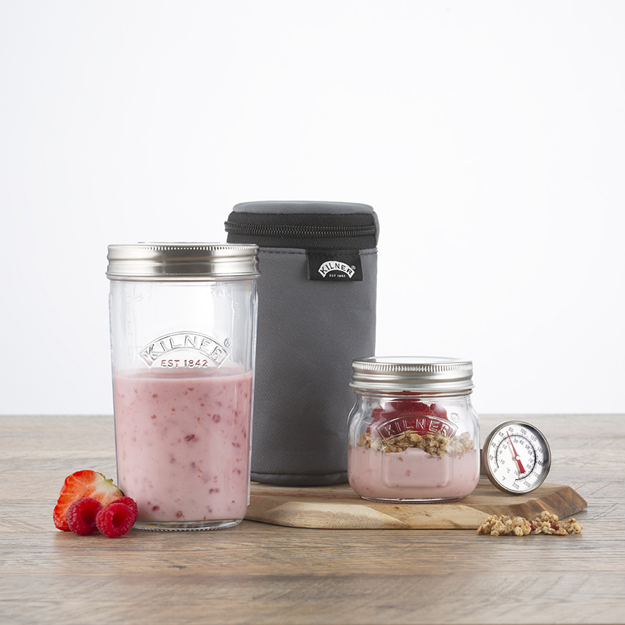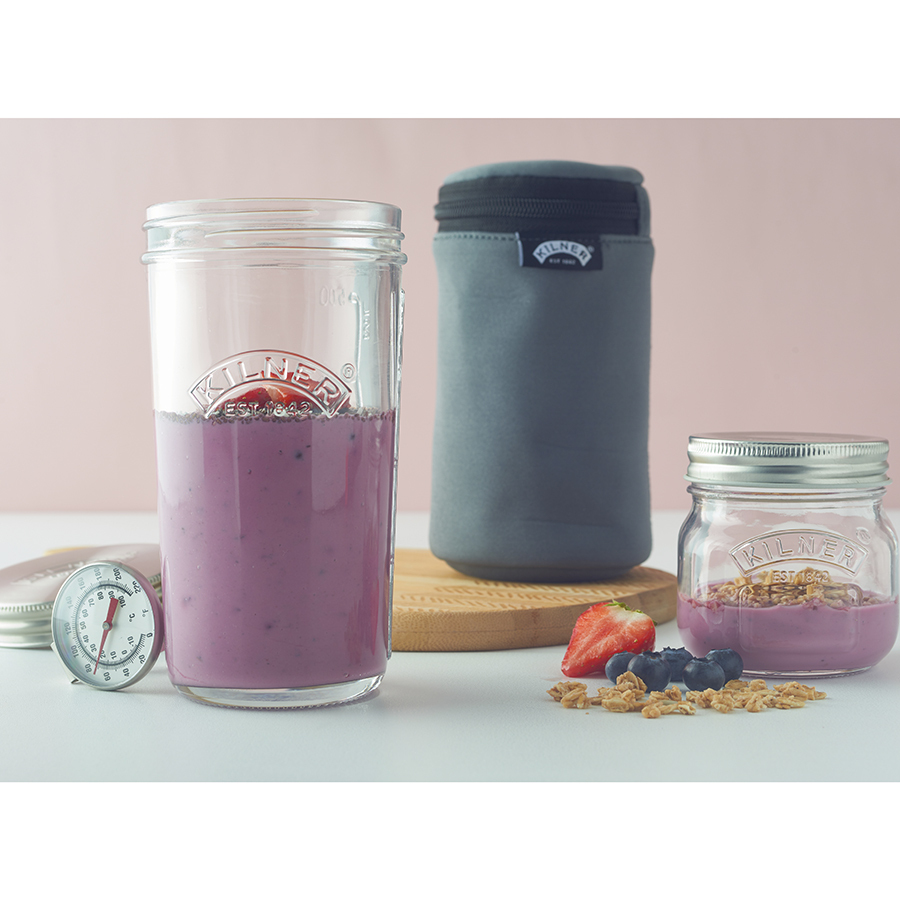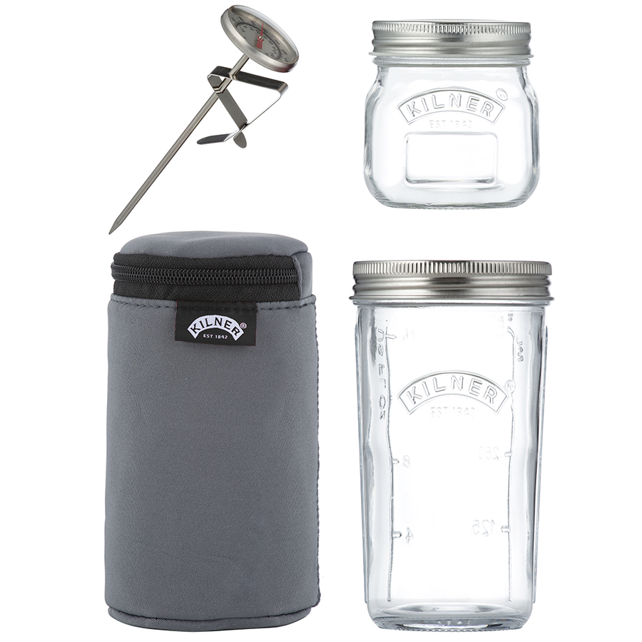 Термометр позволяет контролировать температуру смеси во время нагрева, в то время как неопреновый чехол позволяет поддерживать комнатную температуру внутри банки.