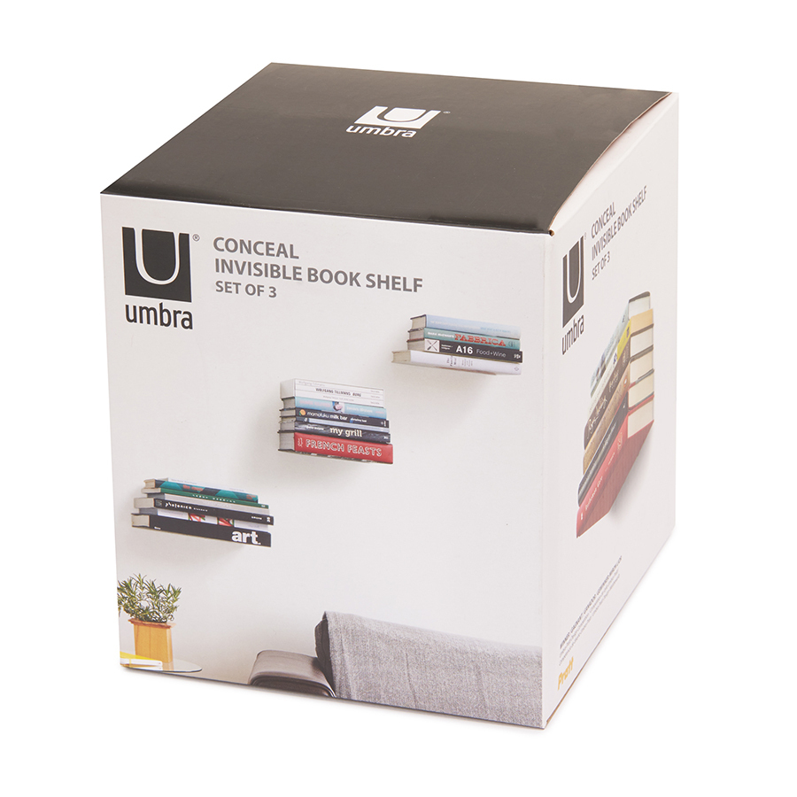 Удивительная книжная полка! Победитель конкурса FORM во Франкфурте и международных соревнований за лучший дизайн - Pratt design competition. Запатентованна в США и Канаде. При взгляде на книжки, просто висящие в воздухе, всем хочется задать один и тот же вопрос: ""Что это такое, и в чем же секрет""? А секрет в конструкции этой полки - простой и совершенной, которая будет постоянно удивлять Ваших гостей. Полка легко крепится к стене, все необходимое уже входит в комплект. Размер 1 полки 13 х 13 х 14 см