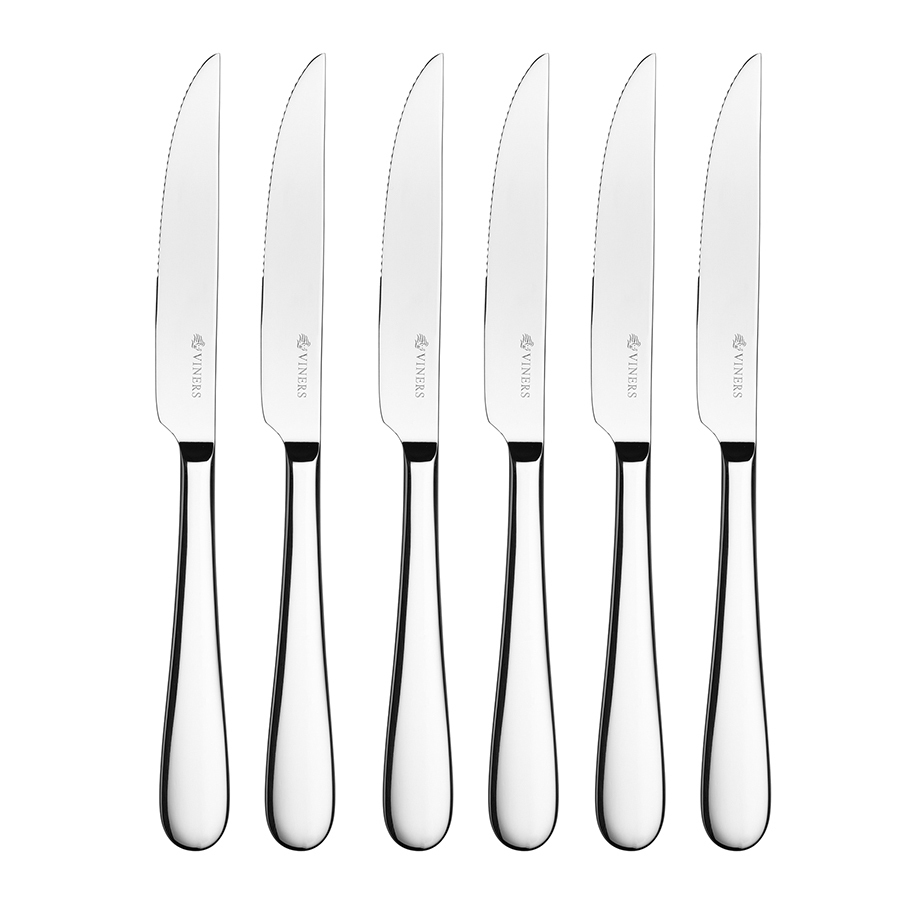 Набор из 6 ножей для стейков в подарочной упаковке. Можно мыть в посудомоечной машине. Набор станет отличным подарком на памятную дату. Select — коллекция столовых приборов из нержавеющей стали 18.0, которая производится по самым высоким стандартам качества. Приборы устойчивы к коррозии, ржавчине и окислению. Бренд Viners даёт гарантию на коллекцию 25 лет.