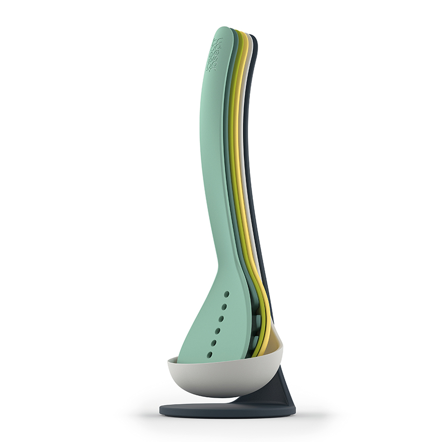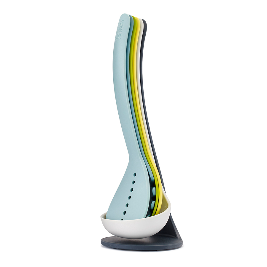 Набор из 5 кухонных приборов Nest Plus на подставке занимает минимум места и отлично смотрится в современном интерьере.