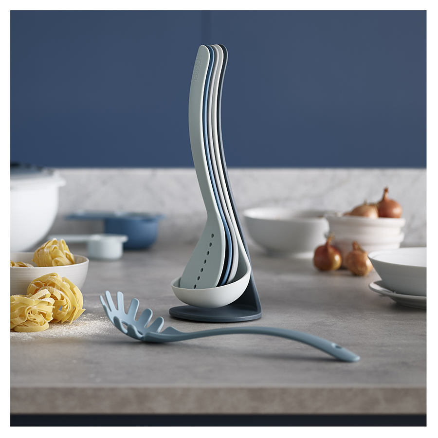Набор из 5 кухонных приборов Nest Plus на подставке занимает минимум места и отлично смотрится в современном интерьере.