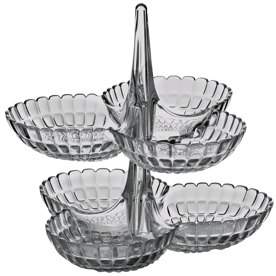 Менажницы Tiffany прекрасно подойдут для повседневной и праздничной сервировки стола и будут великолепно смотреться как в помещении, так и на летней веранде. Их можно использовать для подачи снеков, легких закусок, орехов или сладостей. Рельефная форма в сочетании с прозрачным материалом заставляют поверхность посуды сверкать и переливаться на свету, делая ее центром притяжения взглядов.