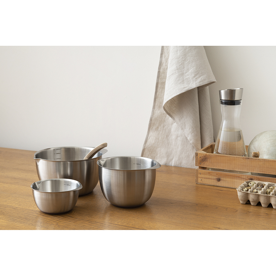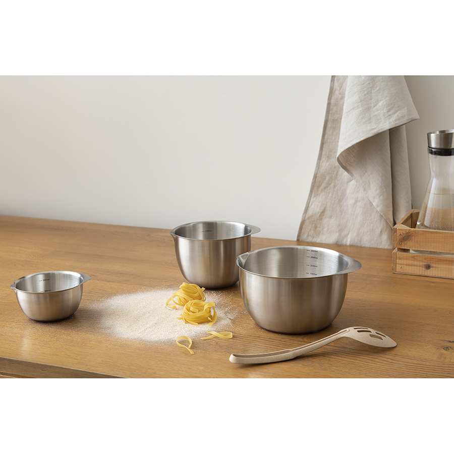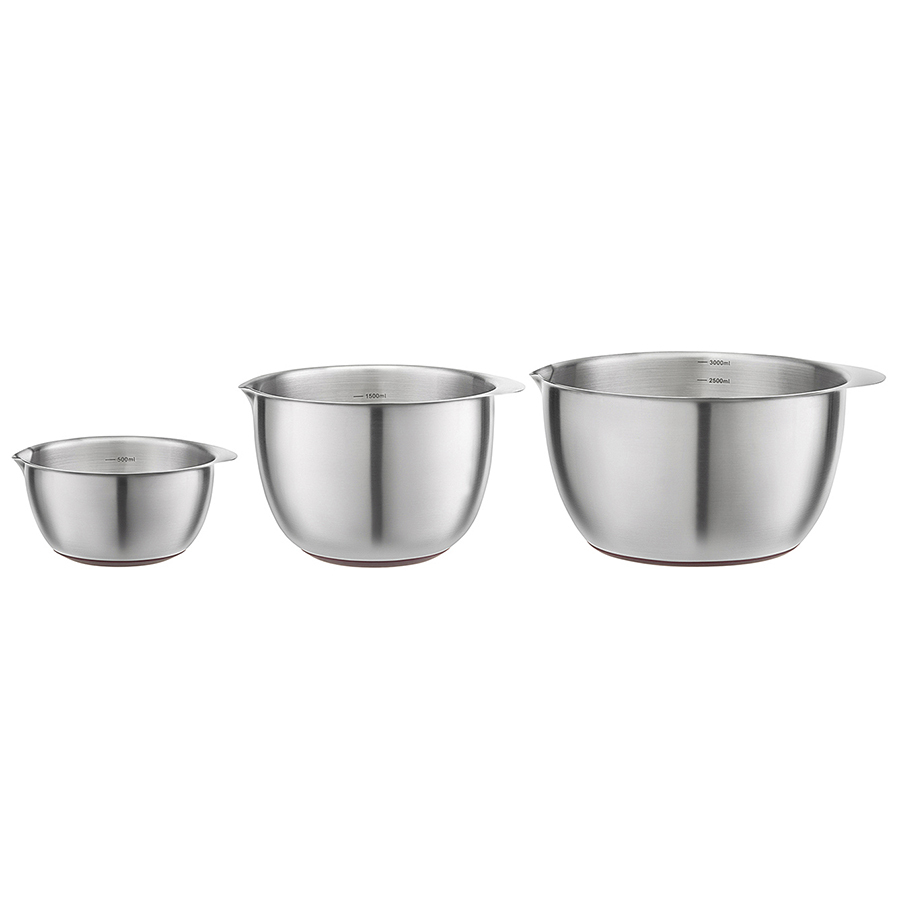 Миски из нержавеющей стали Solvy отлично подойдут для смешивания ингредиентов во время приготовления теста и всевозможных блюд. Наличие ручки и специального “носика” обеспечивает удобное использование и аккуратное переливание готовой массы из одной емкости в другую. Практичный материал изготовления гарантирует простой уход, устойчивость к коррозии, износу и долгий срок службы. В наборе представлены миски различных размеров, что дает возможность выбрать оптимальный вариант для конкретной задачи.