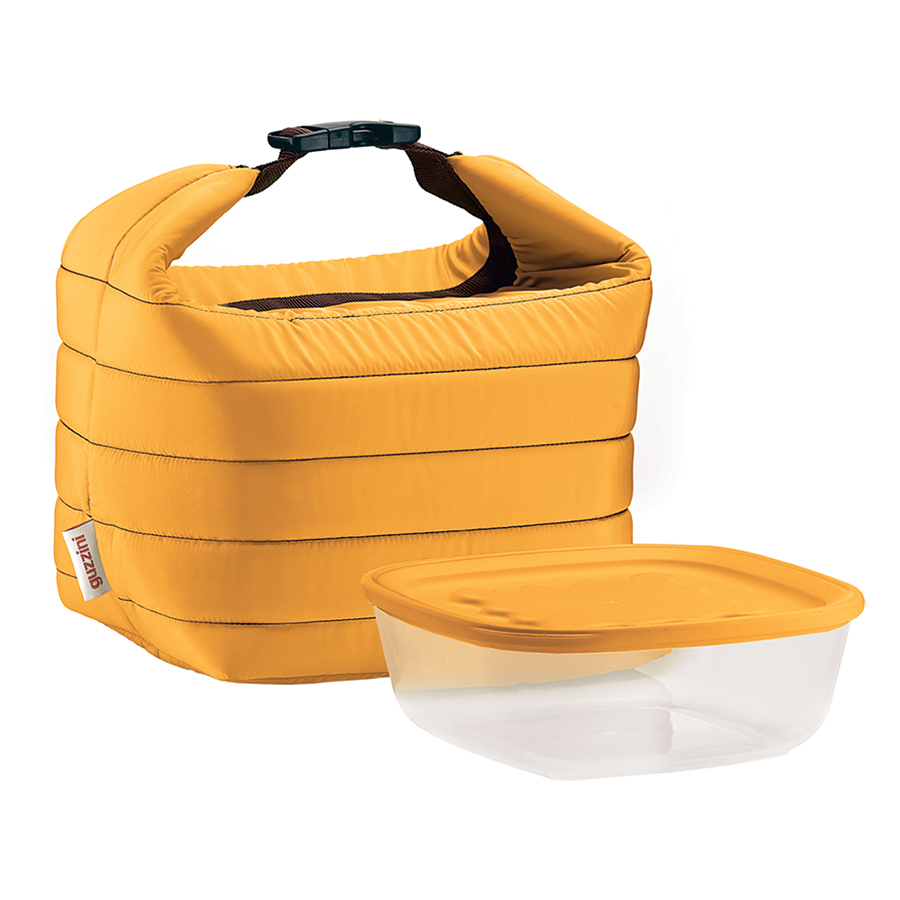 Дизайнеры Guzzini доказали, что сумка для обедов является не просто необходимым предметом на каждый день, но может стать еще и модным аксессуаром. Вся серия Handy отличается стильными цветами, компактной формой, удобной ручкой и застежкой. Набор создан специально для тех, кто не любит отказывать себе в сбалансированном питании даже находясь в дороге. Внутри сумки — термоизоляционная фольга, которая сохраняет температуру горячих и холодных блюд в течение нескольких часов. Пищевой контейнер можно хранить в холодильнике, а также использовать в морозильной камере и микроволновой печи. Он полностью герметичен и легко открывается. Контейнер и сумку можно использовать как вместе, так и по отдельности. Размеры контейнера: 19,6х19,6х7