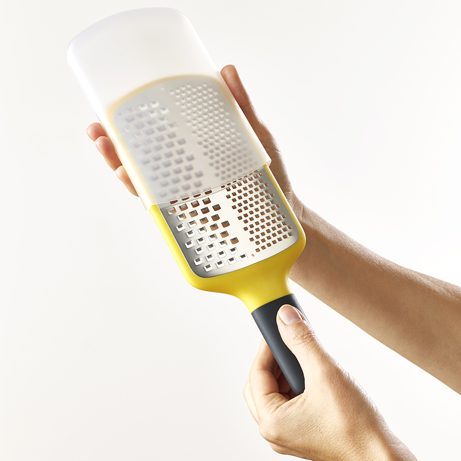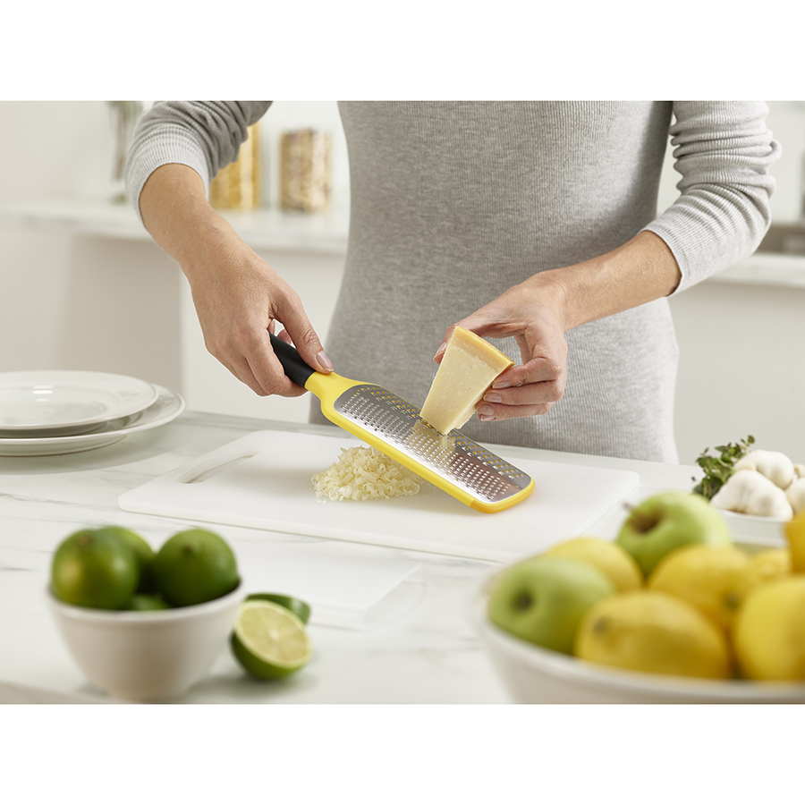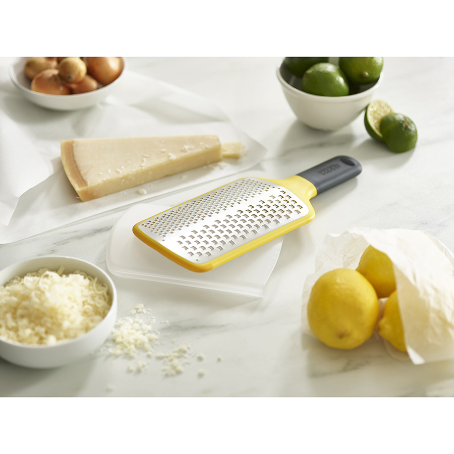 Удобная и компактная тёрка 2-в-1 Multi-Grate оснащена двумя видами лезвий, выполненных из нержавеющей стали. Крупное лезвие подойдет для овощей и сыра, а лезвие с небольшими отверстиями - для сыров твердых сортов и мелкого измельчения (например, цедры лимона). Эргономичная резиновая рукоятка не скользит в руке. В комплект входит защитный чехол для безопасного хранения.