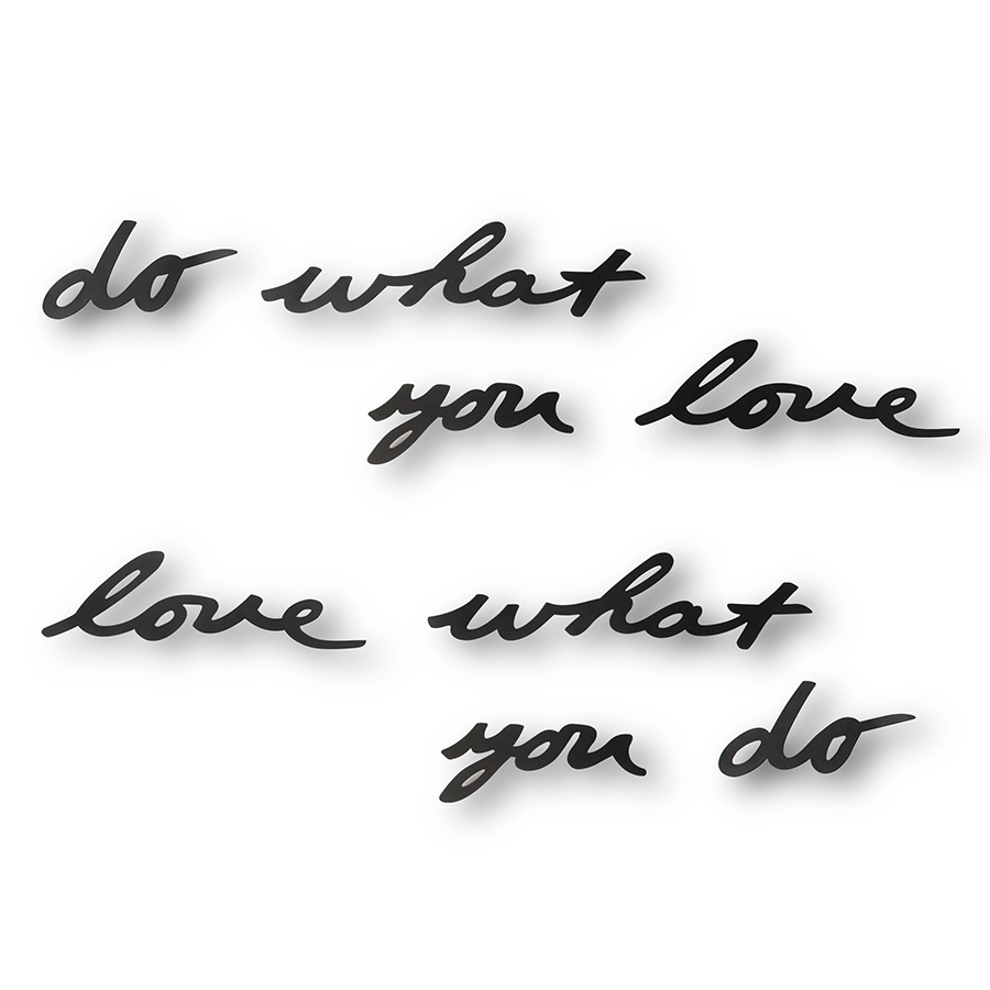 Делай, что любишь, люби, что делаешь" - повторяйте этот девиз каждый раз, когда опускаются руки или силы на исходе. А лучше ежедневно по утрам - тогда вы увидите, какова сила самовнушения! Захочется творить, вершить и жить. Великолепный настенный декор послужит отличным украшением интерьера и мотиватором к действию. В наборе 8 слов. Каждое слово крепится отдельно, так что можно расположить их на стене в произвольном порядке (крепеж в комплекте). Размеры: Do - 7,5 х 16,5 см What - 7,5 х 31,7 см You - 7,5 х 7 см Love - 7,5 х 7 см.