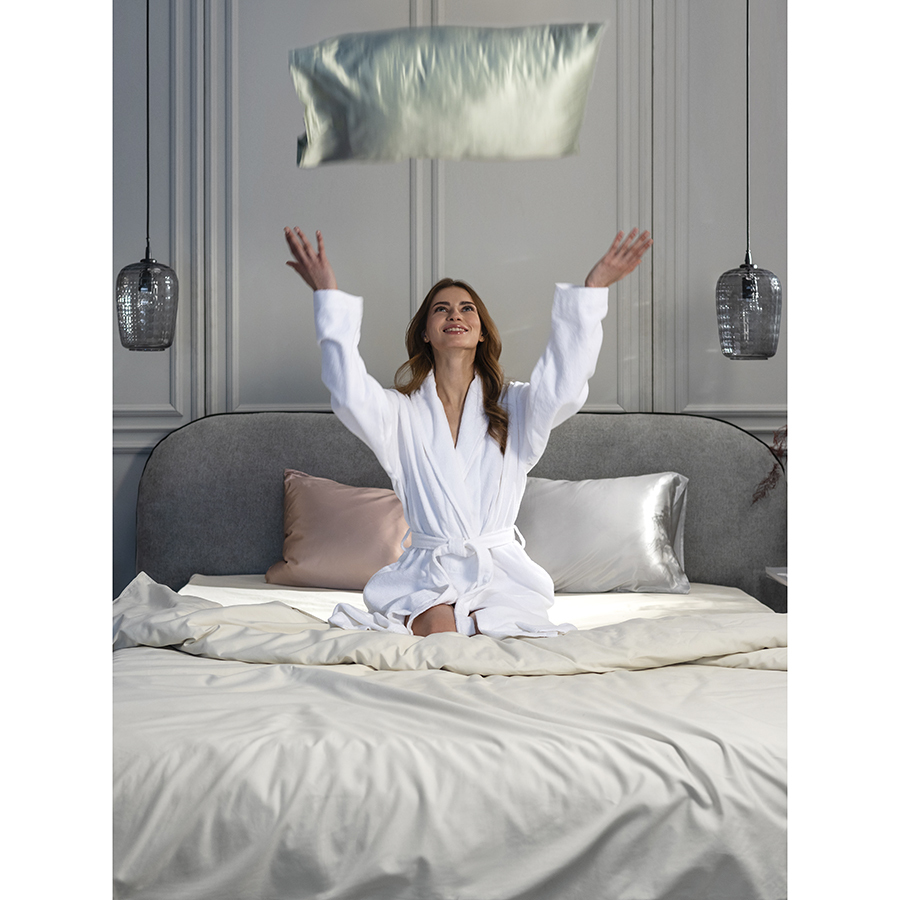 Наволочка из натурального шелка светло-серого цвета из коллекции Essential украсит любую спальню и оставит ощущение нежности на вашей коже. Шелковая ткань меньше склонна к появлению заломов, что позволяет изделию сохранять эстетичный вид. Материал хорошо впитывает влагу и обеспечивает оптимальную воздухопроницаемость, создавая условия для комфортного и здорового сна. Его невероятно мягкая и гладкая фактура предотвращает появление морщин на лице и снижает риск образования спутанных узелков на волосах. Кроме того, шелк является гипоаллергенным, что делает его отличным выбором для людей с чувствительной кожей и аллергиями.