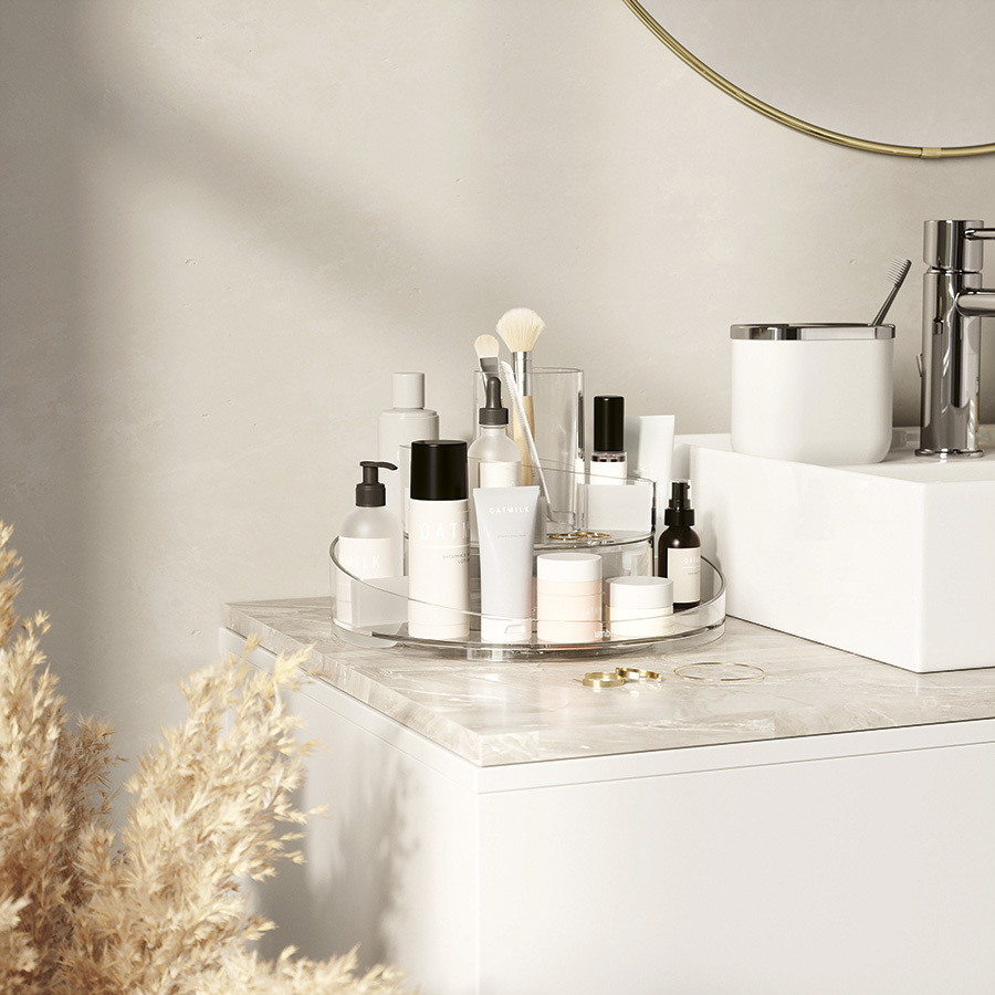 Многоуровневый органайзер поможет организовать хранение косметики и аксессуаров.