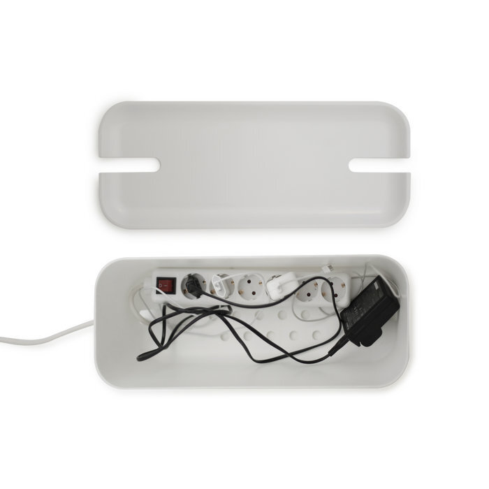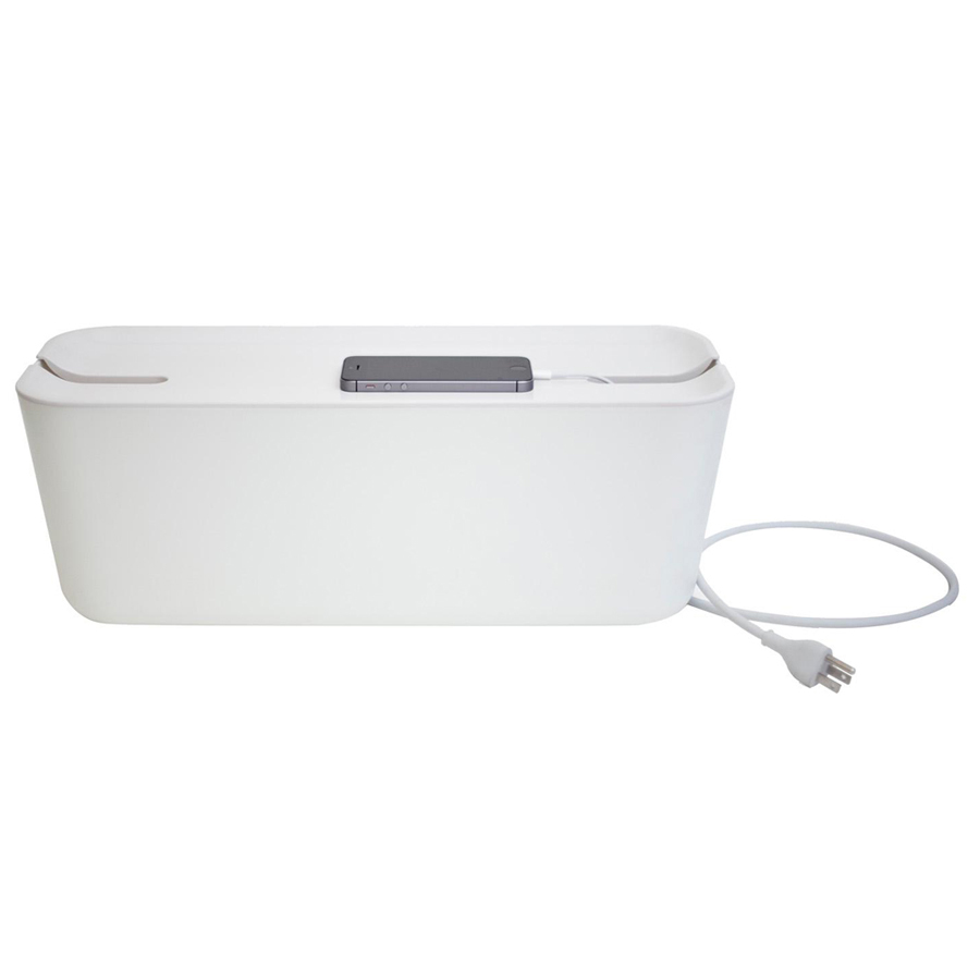 Органайзер для проводов Hideaway позволит вам удобно хранить кабели и зарядные устройства различных электронных приборов (смартфонов, iPad, цифровых камер и пр.). Это прекрасное решение для дома и офиса, при помощи которого можно в одном месте расположить все необходимые провода, избежав путаницы и ежедневного поиска нужного кабеля. Основные преимущества: • Скрывает удлинители, заглушки и адаптеры; • Обеспечивает надежное хранение электрических проводов; • Изготовлен из огнестойкого пластика; • Имеет большой внутренний объем; • Оснащен силиконовыми ножками для защиты поверхностей от царапин; • Крышка с функцией щелчка крепко удерживает шнуры и зарядные устройства; • Нижняя часть выдвижного ящика имеет вентиляционные отверстия. Hideaway имеет полностью продуманную конструкцию, которая обеспечивает ему отличную надежность и высокий уровень безопасности. В 2012 году он даже получил награду Global Innovation Award (GIA) за "лучший дизайн". Органайзер идеально подходит для хранения большого количества проводов и зарядных устройств. Кроме того, его можно использовать как с заземленными, так и с не заземленными удлинителями (максимум 8 розеток).