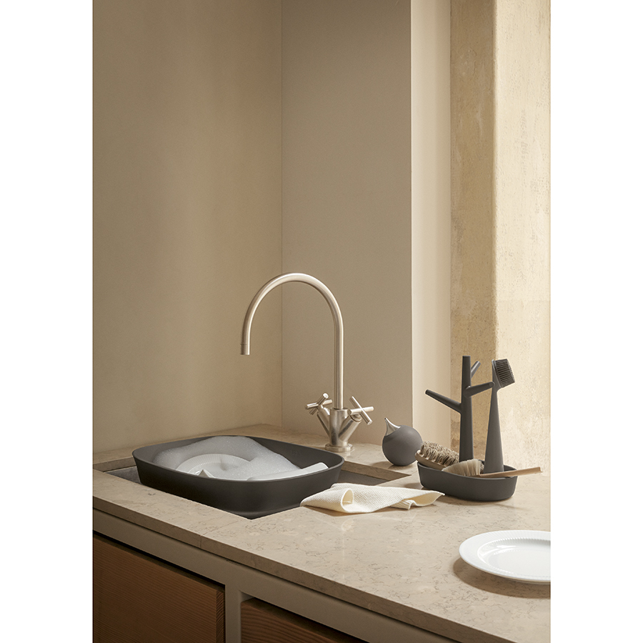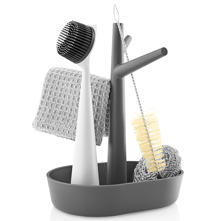 Органайзер в стильном дизайне поможет навести порядок возле раковины. Он отлично подойдет для того, чтобы повесить кухонное полотенце, положить сушиться губки и щетки, поставить флаконы со средствами для мытья посуды.