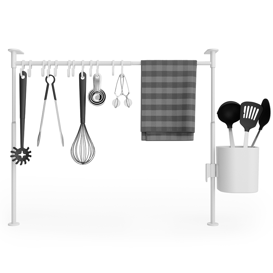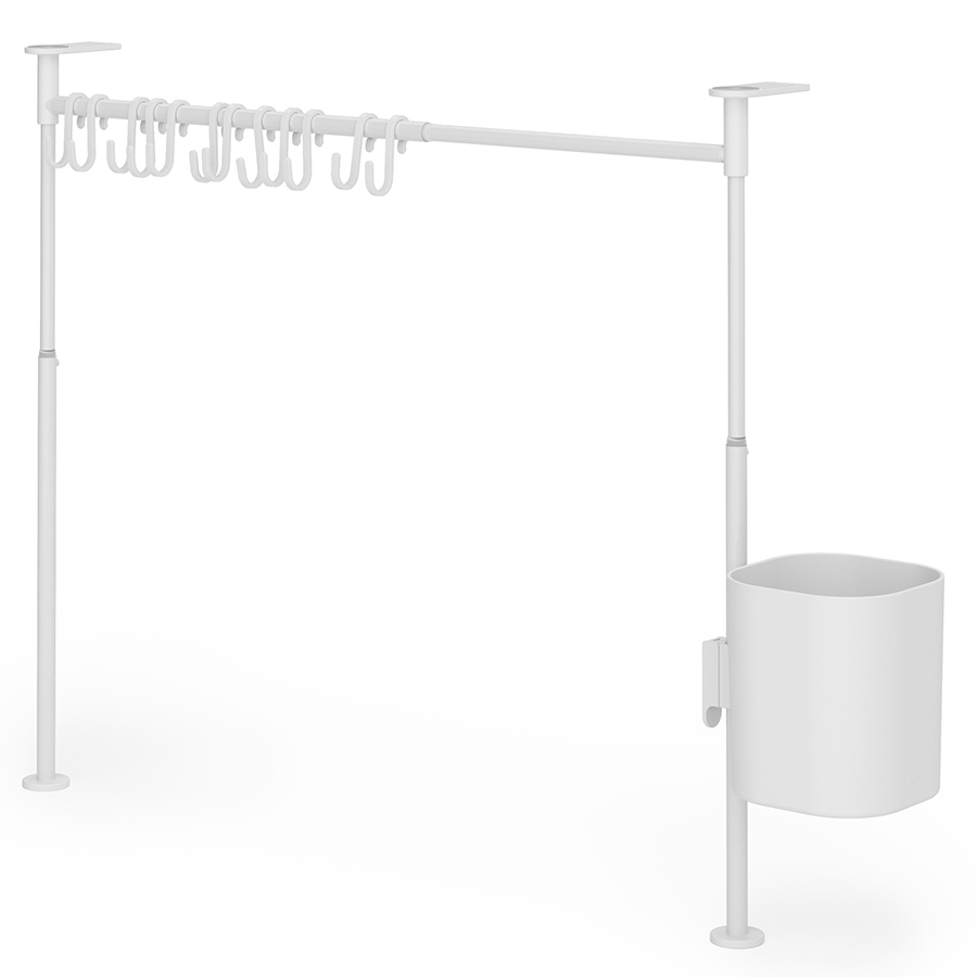 Многофункциональный органайзер оснащен двенадцатью крючками и подвесным контейнером. Конструкция легко раздвигается без инструментов. Органайзер раздвигается от 38 до 50 см в высоту и от 39 до 61 см в ширину. Мягкие накладки защищают мебель от повреждений.