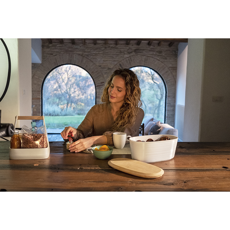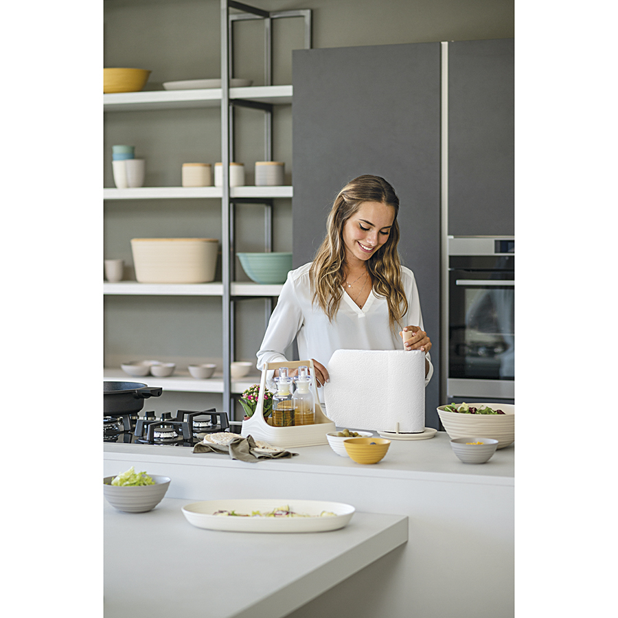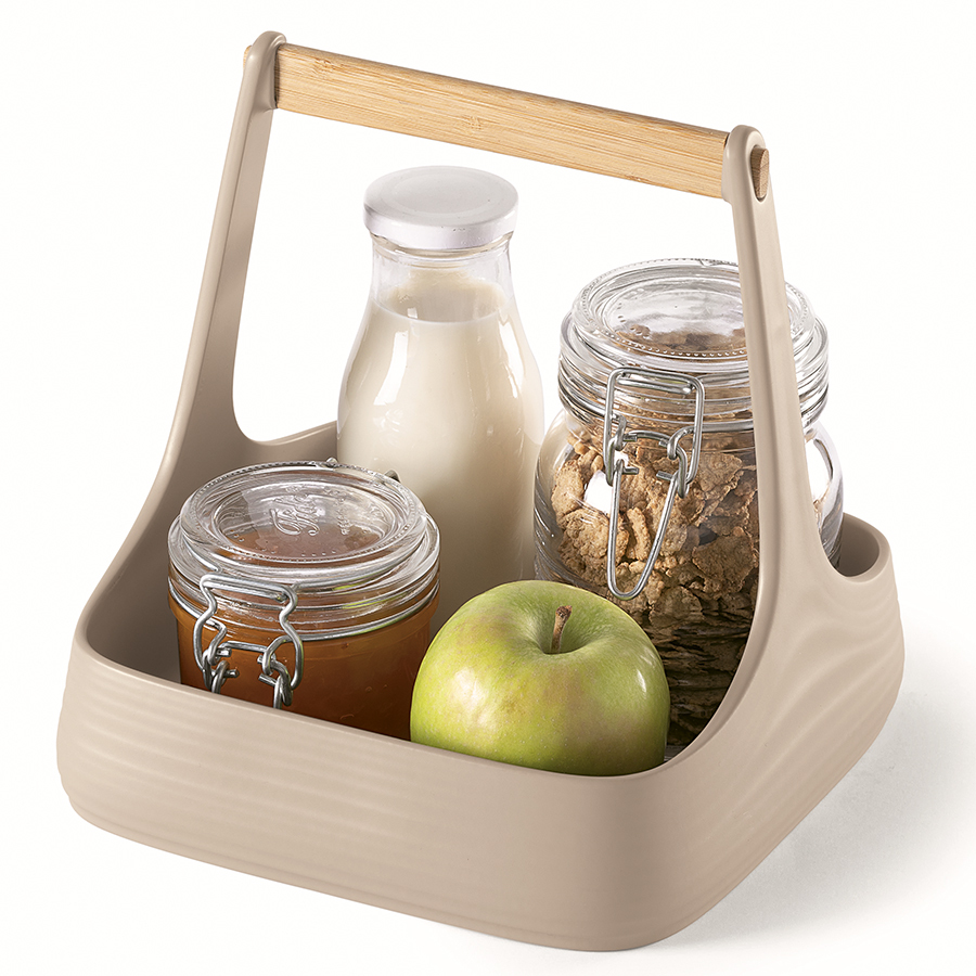 В качестве исходного сырья выступают пластиковые бутылки объемом 1,5 л. Дизайн изделия напоминает керамику. Реалистичности внешнему виду придают тщательно подобранные пастельные цвета и намеренно неровные круговые рисунки, создающие эффект ручной работы. Органайзер отлично гармонирует с другими предметами коллекции Tierra.