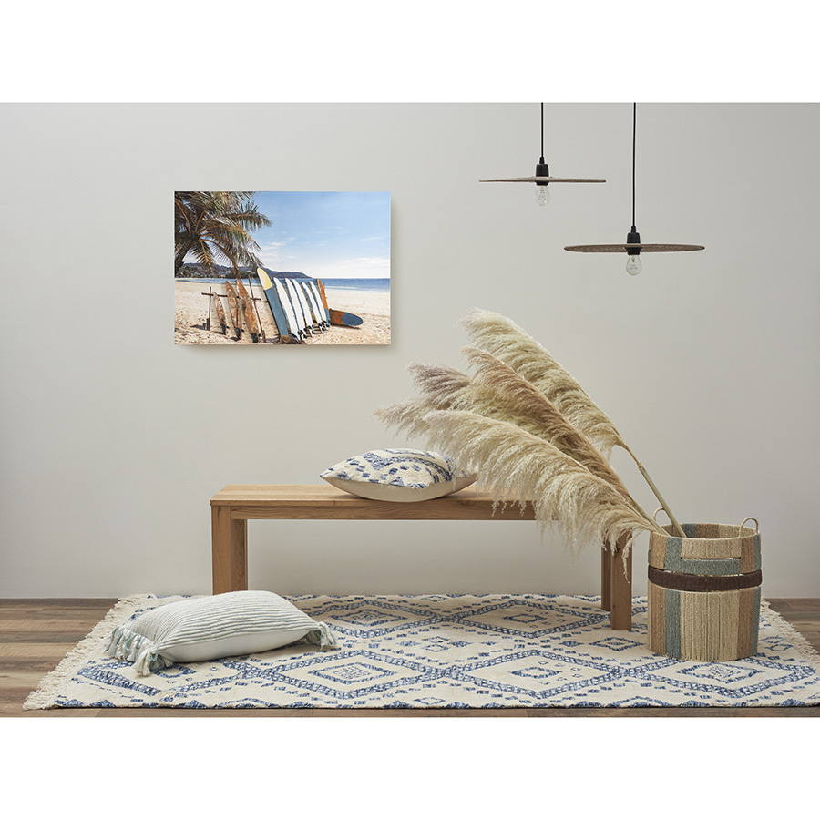 - Декоративное панно с летним принтом освежает интерьер и является прекрасным подарком для любителей морских пейзажей и серфинга.