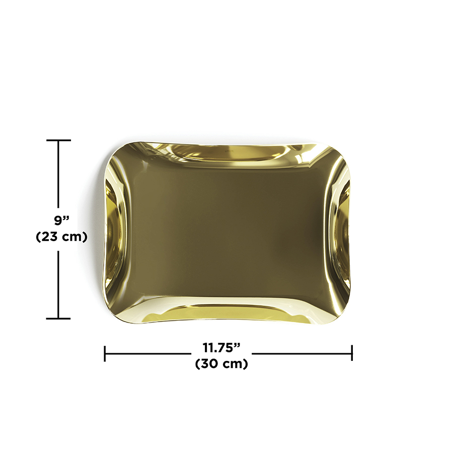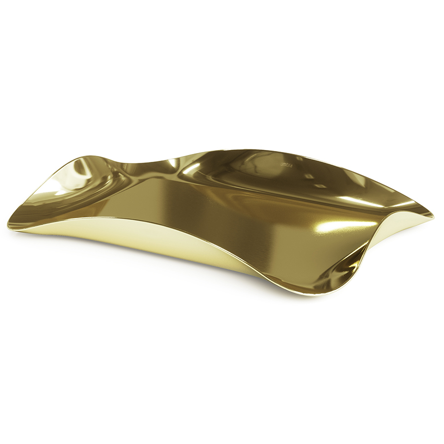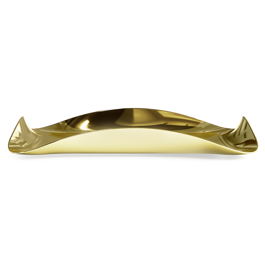 Поднос Wave сделает любую сервировку изысканной и неповторимой. Волнистые края создают красивый визуальный эффект и придают изделию из металла цвета латуни необычный вид. Изогнутая окантовка также служит ручками для удобного захвата и комфортной переноски. На нижней части имеется мягкая накладка, предотвращающая появления царапин на поверхности стола. Поднос также можно использовать в декоративных целях – размещать на нем свечи, украшения, ароматизаторы для дома и любые другие предметы.