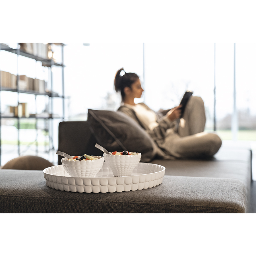 Поднос круглый Tiffany станет настоящим украшением любого стола. Благодаря высокой устойчивости материала к внешним воздействиям, он идеально подходит для сервировки как в помещении, так и на свежем воздухе. Вы можете использовать его для перемещения блюд и напитков, а также для подачи всевозможных закусок, десертов или выпечки.