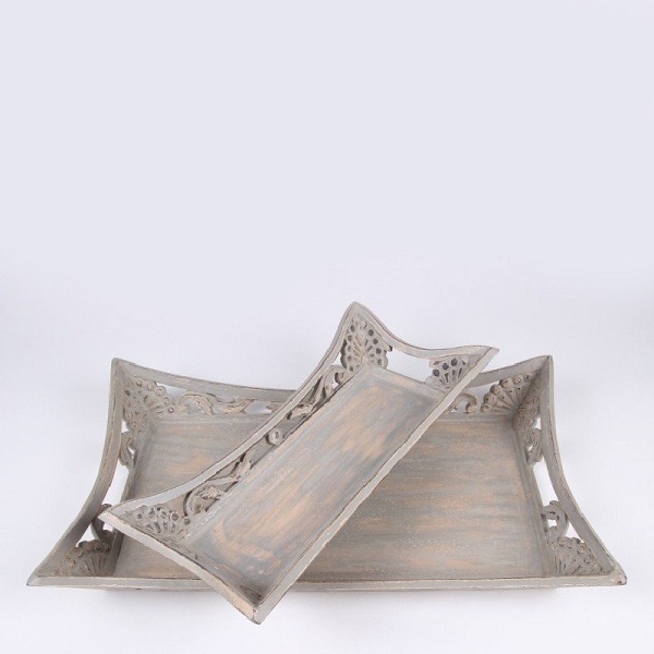 Отличный винтажный деревянный поднос из дерева манго. Сделано вручную и выглядит особенно благодаря резьбе и по дереву и оригинальной форме. Такой поднос можно использовать в качестве сервировочного подноса или для создания красиво декорированной атмосферы.