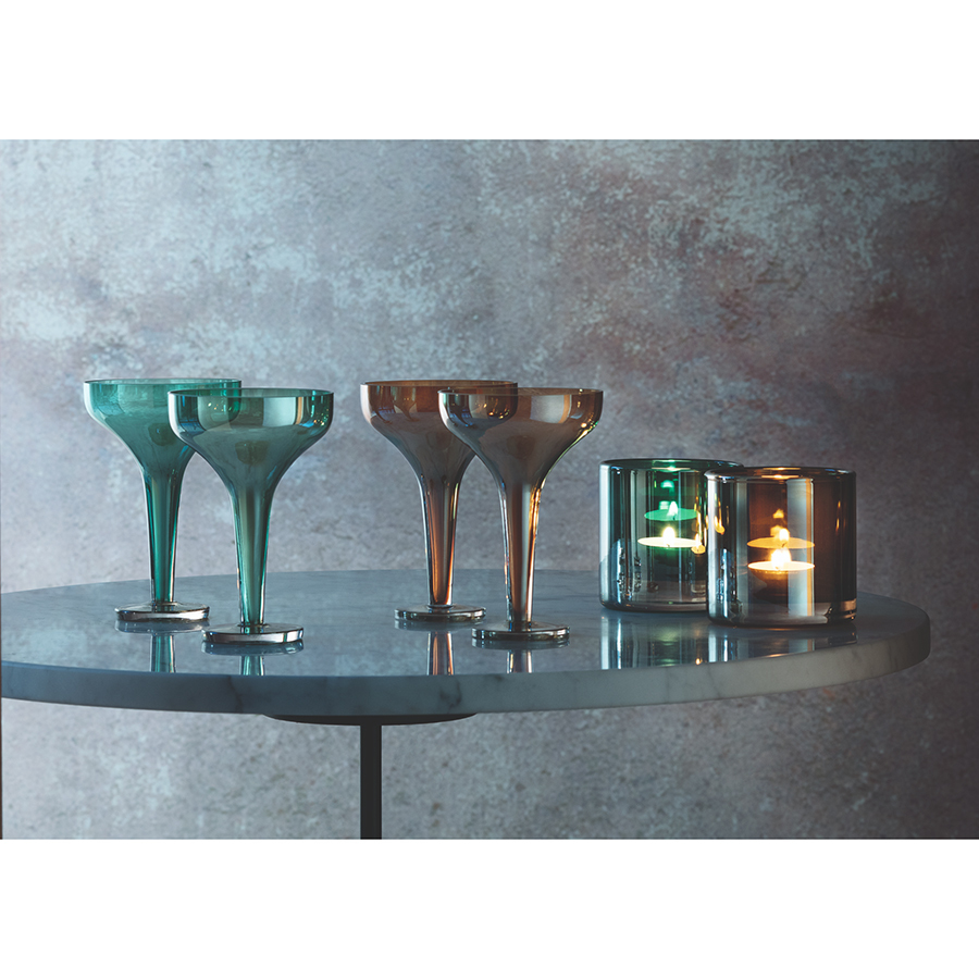 Элегантный подсвечник прекрасно подойдет для чайных или высоких свечей. Изделие выполнено из цветного выдувного стекла с глянцевым блеском.
