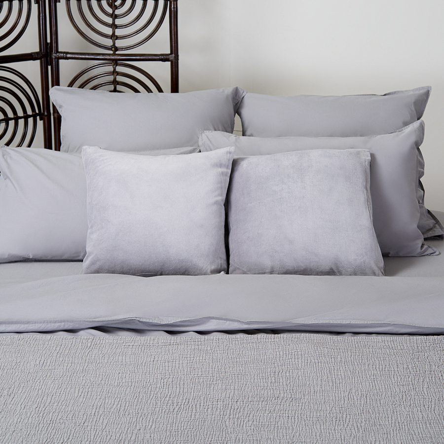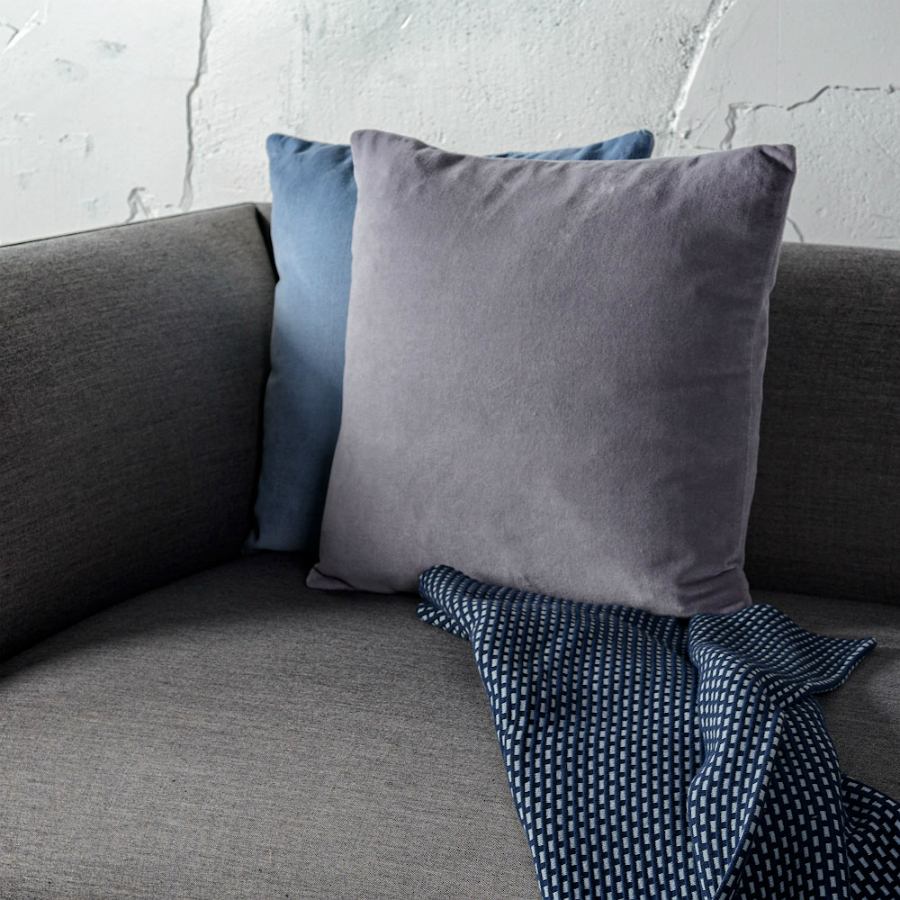 Декоративная подушка базового серого цвета выполнена из прочного хлопкового бархата. Нежный, приятный на ощупь материал не электризуется, не вызывает аллергию, и за ним легко ухаживать. За счет плотного наполнителя изделие хорошо держит форму. Плотность ткани - 250GSM.