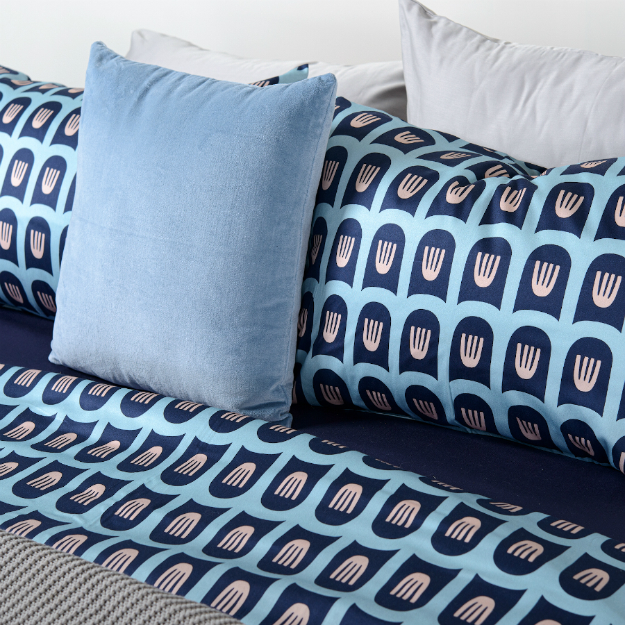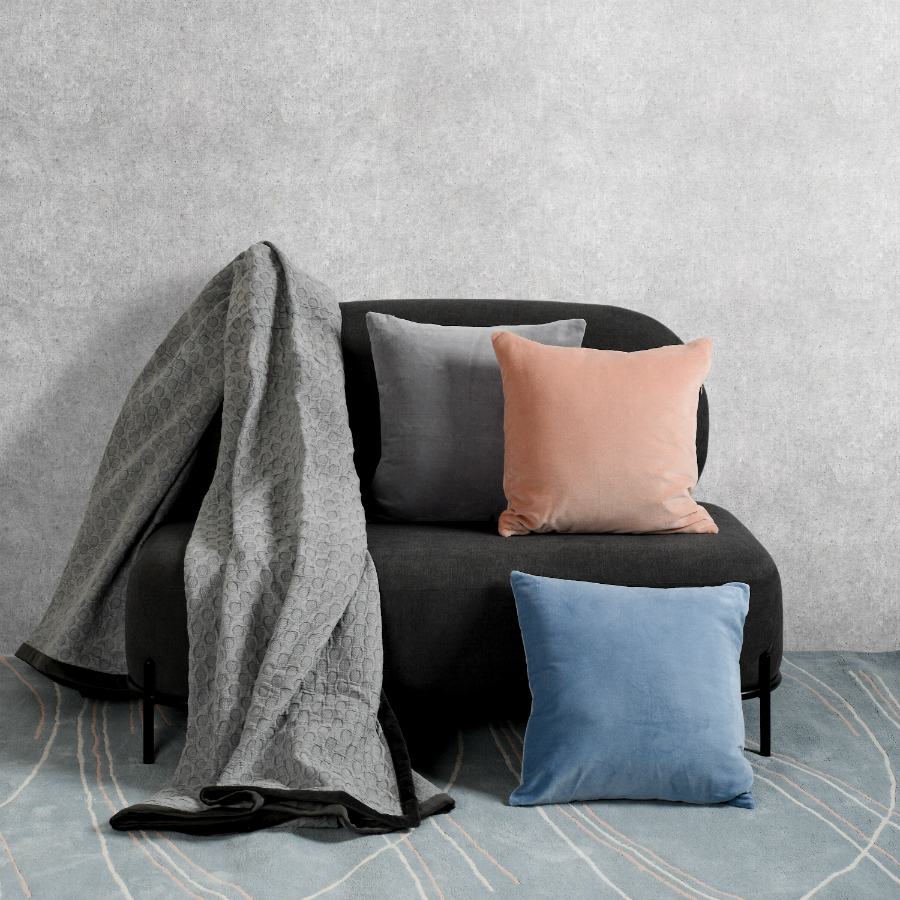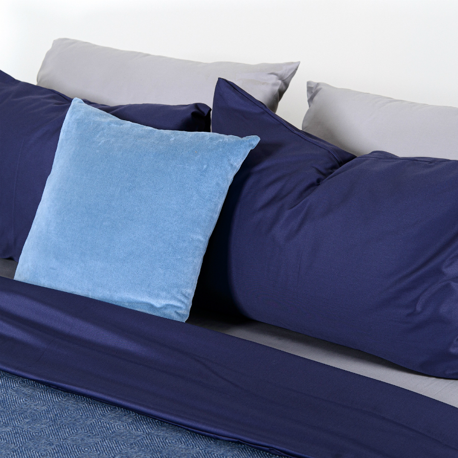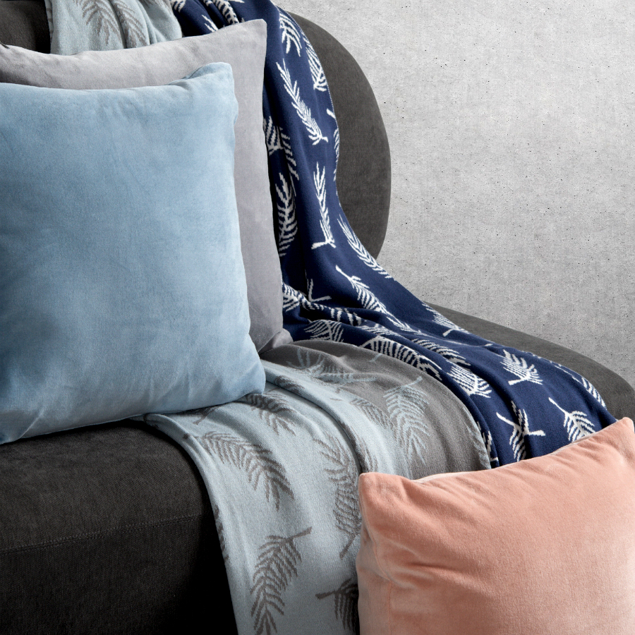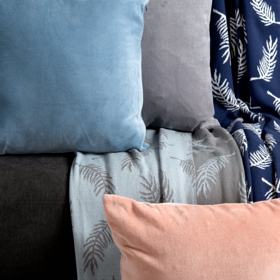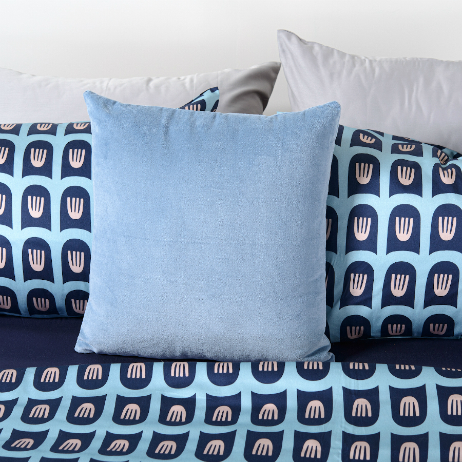 Декоративная подушка светло-синего цвета выполнена из прочного хлопкового бархата. Нежный, приятный на ощупь материал не электризуется, не вызывает аллергию, и за ним легко ухаживать. За счет плотного наполнителя изделие хорошо держит форму. Плотность ткани - 250GSM.