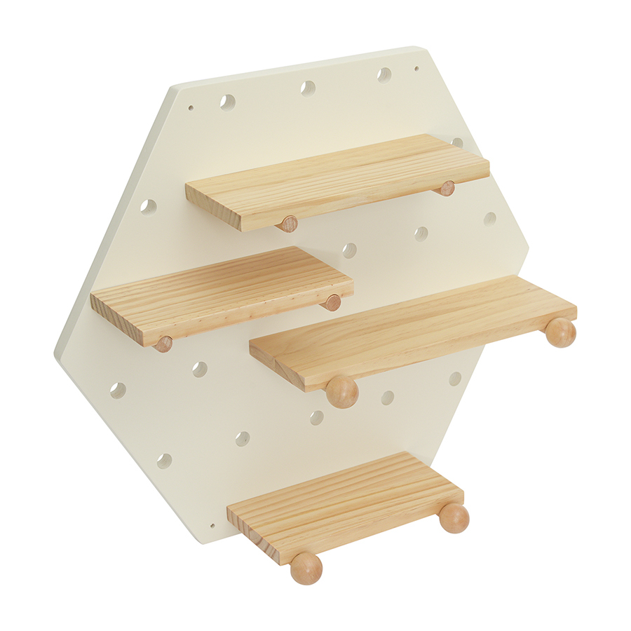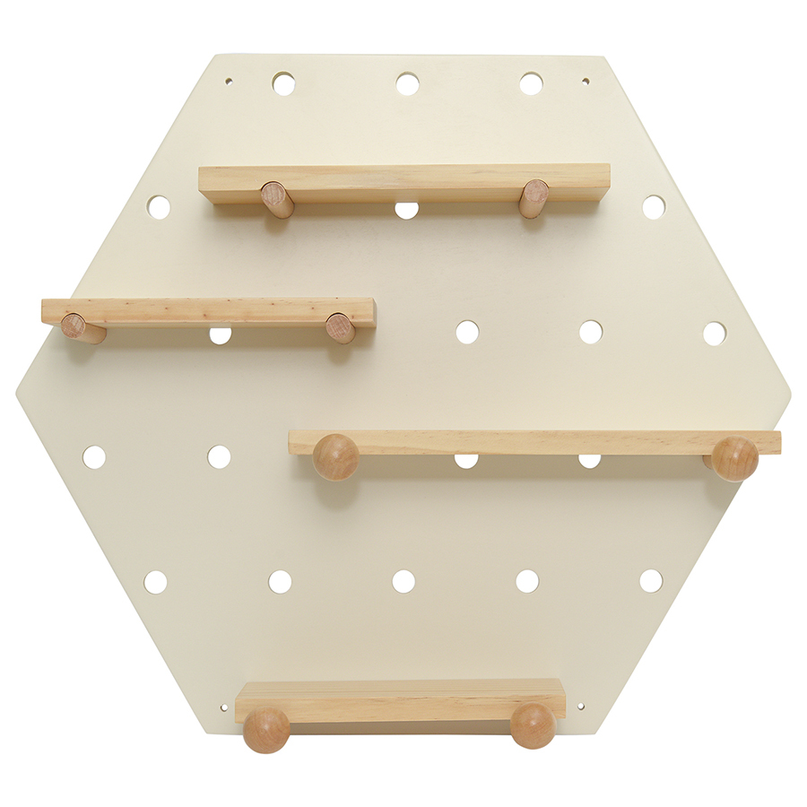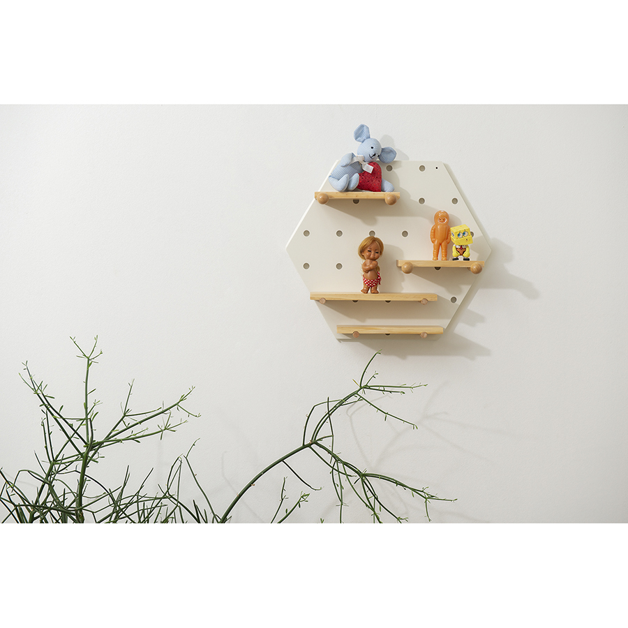 Полка шестиугольная Shely – многофункциональный предмет интерьера, который позволит удобно разместить различные аксессуары: наушники, декор, книги, игрушки, рамки с фотографиями, часы, цветочные горшки, сумки и многое другое. Конструкция предусматривает наличие горизонтальных полок и специальных держателей. Благодаря минималистичному дизайну и нейтральному цветовому решению модель прекрасно вписывается в любое оформление комнаты. Настенный монтаж обеспечивает компактное размещение. Практичные материалы гарантируют изделию износостойкость и долгий срок службы.