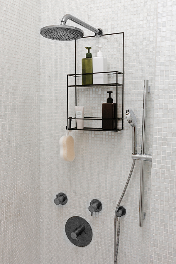 Очень удобный металлический органайзер, дизайн которого навеян геометрическими абстракциями художника Пита Мондриана, поможет навести порядок в ванной.