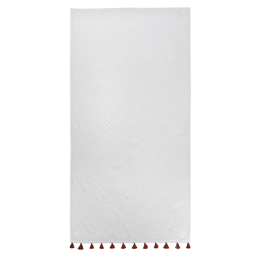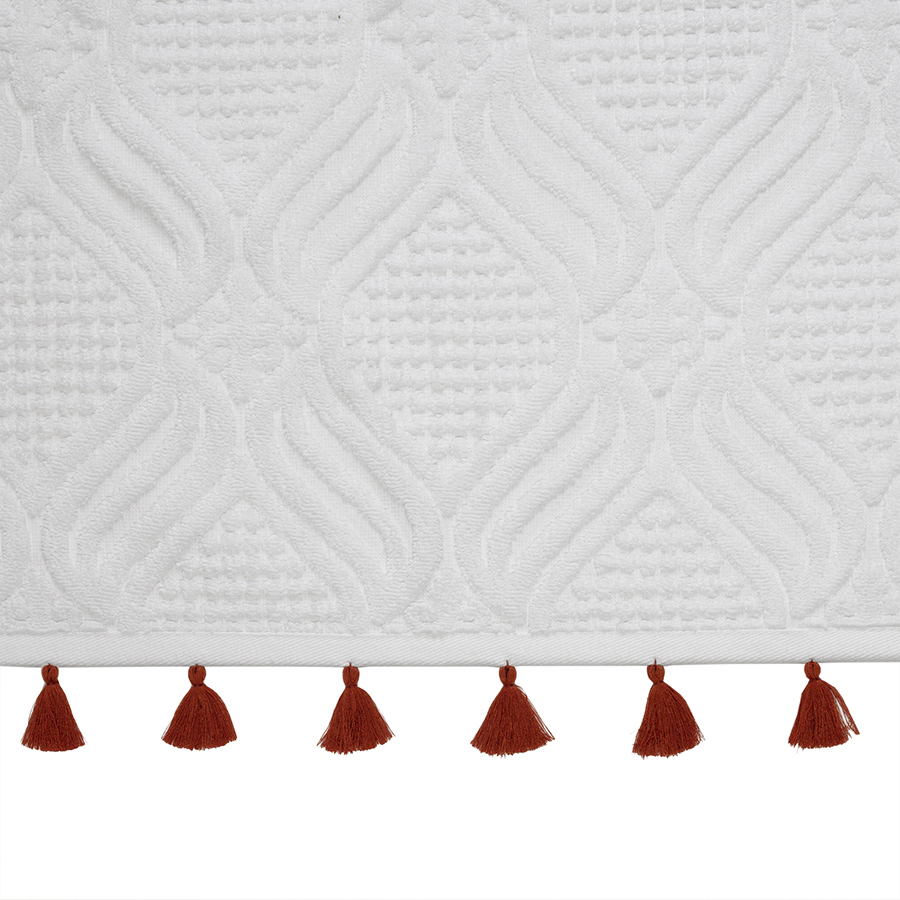 Банное полотенце из коллекции Essential – качественный текстиль из экологичного хлопка, который идеально подойдет для ежедневного использования и украсит вашу ванную комнату. Мягкая, приятная на ощупь ткань превосходно впитывает влагу и дарит комфорт при контакте с кожей. Материал абсолютно гипоаллергенен, так как не содержит синтетических волокон, при этом обладает высокими показателями прочности и износостойкости. Дизайн полотенца вдохновлен этническими мотивами, что подчеркивают декоративные элементы в виде кисточек контрастного оттенка.