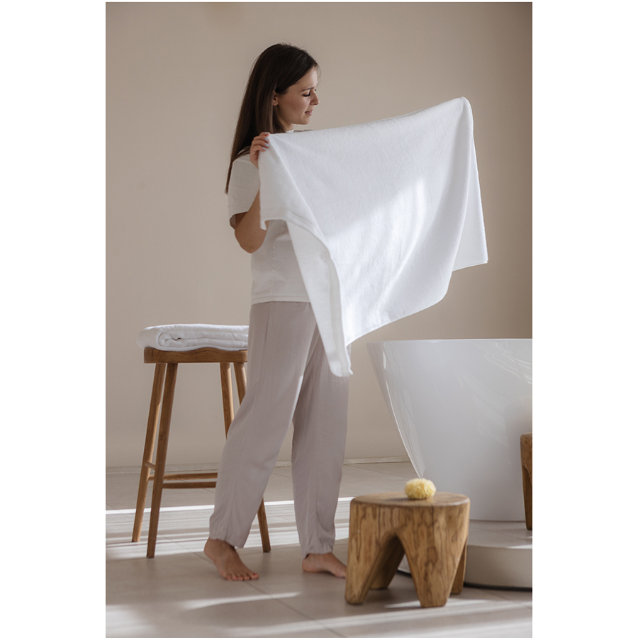 Однотонное банное полотенце белого цвета из коллекции Essential понравится тем, кто любит качественные и стильные банные принадлежности. Мягкая, при этом прочная пряжа изготавливается из лучших сортов длинноволокнистого хлопка методом тщательного прочесывания, что значительно улучшает ее качественные характеристики. Изделие быстро впитывает влагу, оставляя приятное ощущение свежести и чистоты. Полотенце отличается износостойкостью: хорошо держит форму и сохраняет впитывающие свойства на протяжении длительного времени.