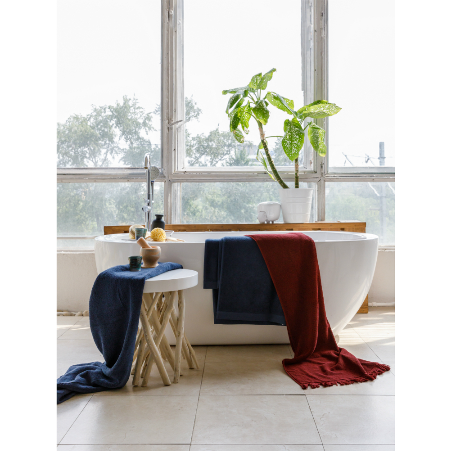 Однотонное банное полотенце темно-синего цвета из коллекции Essential понравится тем, кто любит качественные и стильные банные принадлежности. Мягкая, при этом прочная пряжа изготавливается из лучших сортов длинноволокнистого хлопка методом тщательного прочесывания, что значительно улучшает ее качественные характеристики. Изделие быстро впитывает влагу, оставляя приятное ощущение свежести и чистоты. Полотенце отличается износостойкостью: хорошо держит форму и сохраняет впитывающие свойства на протяжении длительного времени.