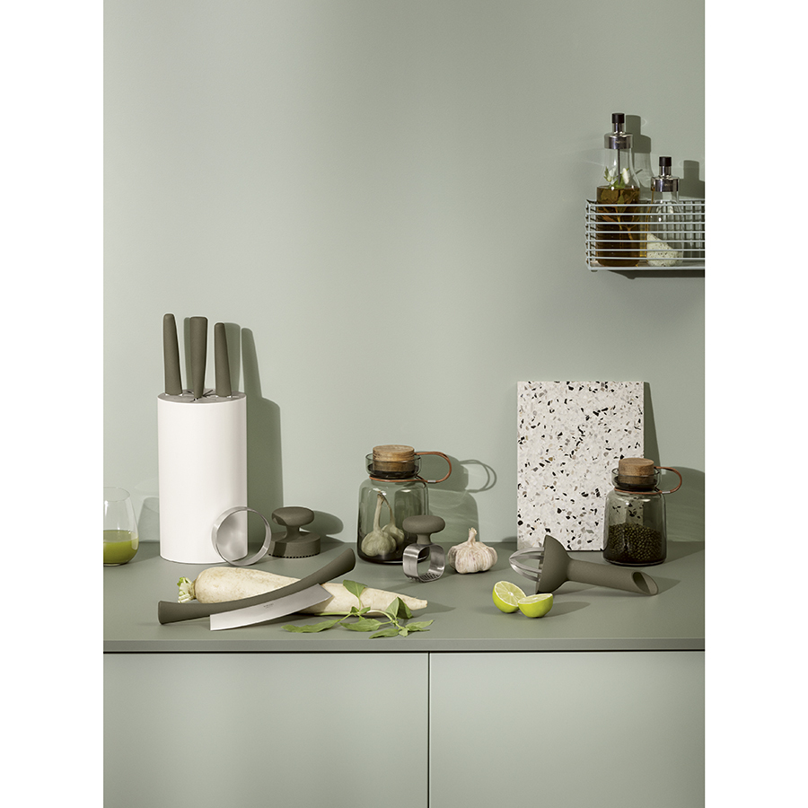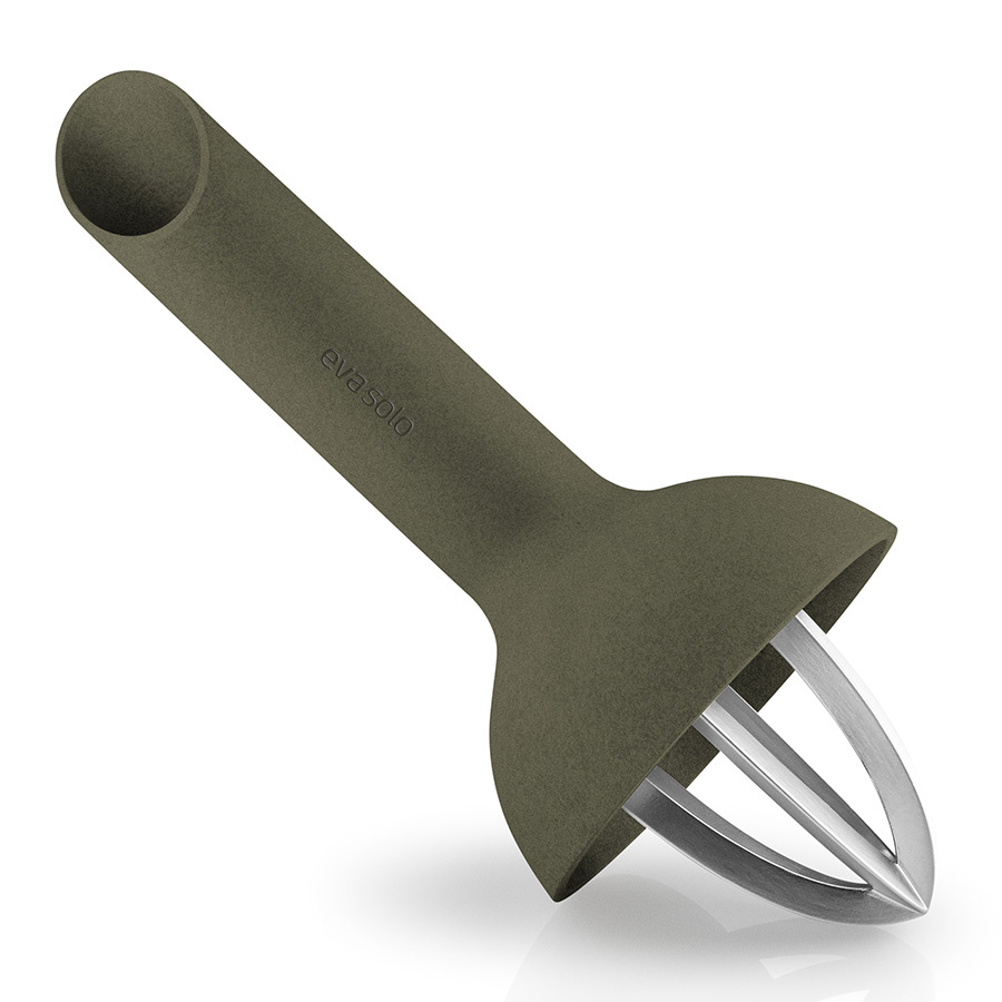 Сердечник аксессуара изготовлен из нержавеющей стали, стойкой к окислению и износу. Ручка представлена в виде воронки, по которой сок, очищенный от зерен и мякоти, попадает прямо в стакан или кувшин.