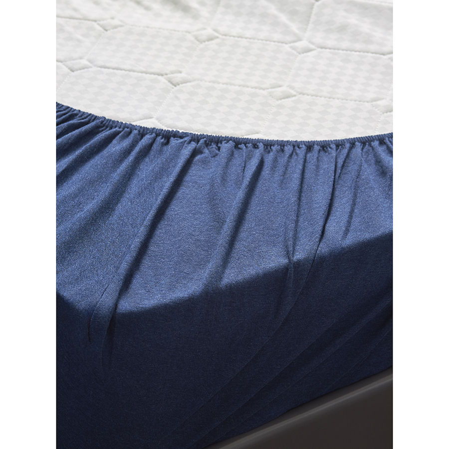 Простыня на резинке из хлопкового трикотажа темно-синего цвета из коллекции Essential – прекрасный выбор для всех, кто предпочитает постельное белье из натуральных материалов. Ткань прочная и долговечная, имеет мягкую, приятную на ощупь фактуру, что дарит невероятное ощущение комфорта. Хлопок является экологичным и гипоаллергенным материалом, который быстро впитывает влагу, хорошо пропускает воздух и помогает поддерживать оптимальную температуру тела во время сна в любое время года. Простыня на резинке идеально прилегает за счет надежной фиксации по всему периметру матраса, предотвращая образования складок и сохраняя безупречный вид постели.