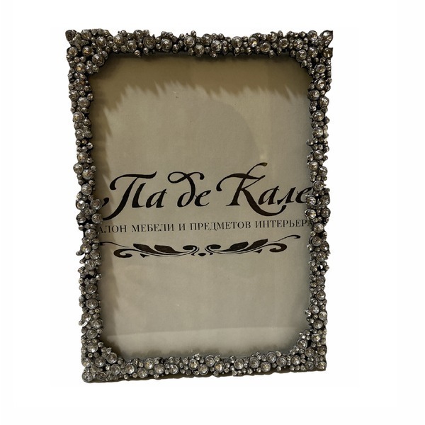 Фоторамка из литого металла с кристаллами. Можно ставить рамку по горизонтали и вертикали. Задняя поверхность бархатная. Подходит для фотографии размером 13х18 см.