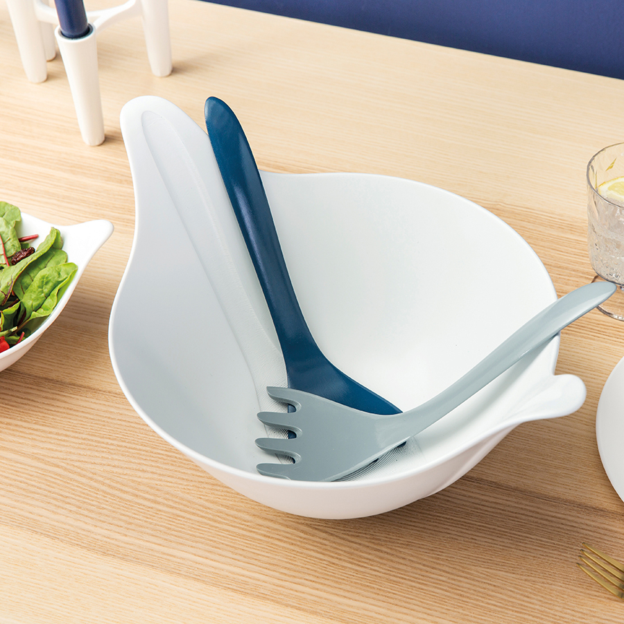 Салатник LEAF - это ясный, простой и элегантный дизайн полимерной посуды, будто специально созданной для эффектной подачи здоровой пищи. В комплект входят приборы для салата, которые изящно вливаются в корпус салатника. Особенности: - объем 4 л - не содержит меламин - можно мыть в посудомоечной машине Производство: Германия
