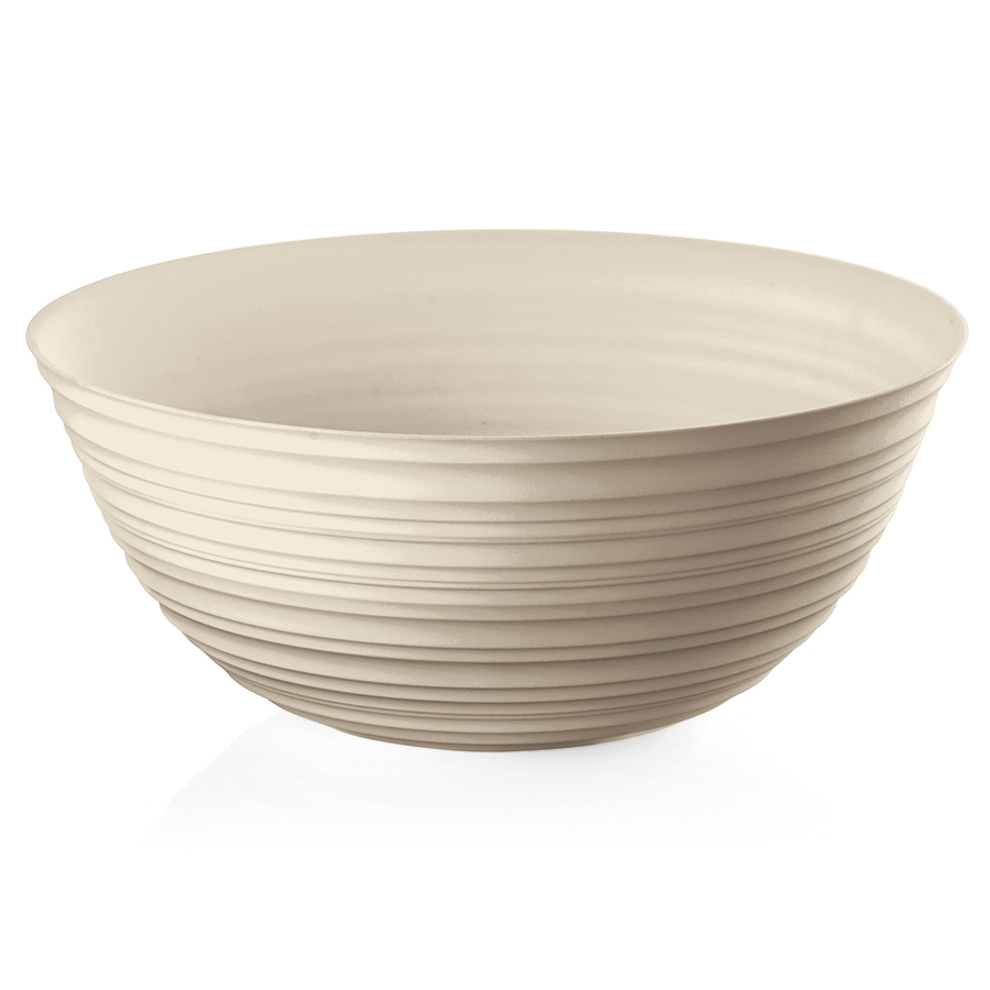 Салатник Tierra объемом 5 л идеально подойдет для смешивания продуктов, приготовления теста, хранения фруктов и овощей. Изделие разработано Pio&Tito Toso по запатентованной технологии из перерабатываемого продукта. В качестве исходного сырья выступают пластиковые бутылки объемом 1,5 л. Дизайн посуды напоминает керамику, а реалистичности внешнему виду придают тщательно подобранные пастельные цвета и намеренно неровные круговые рисунки, создающие эффект ручной работы. Салатник отлично гармонирует с другими предметами коллекции Tierra. Можно мыть в посудомоечной машине при температуре не более 55 градусов. Изделие не подходит для микроволновой печи.