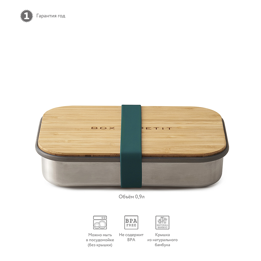 Изделие подходит для хранения как уже готовых сэндвичей, так и отдельных продуктов, входящих в их состав. Антибактериальные свойства бамбука позволяют использовать крышку коробки в качестве разделочной доски, на которой блюдо можно приготовить непосредственно перед подачей. Корпус бокса выполнен из нержавеющей стали, он сохранит свой внешний вид даже в сложных условиях эксплуатации. Силиконовая лента-перетяжка герметично зафиксирует крышку. Она легко моется и также очень долговечна.