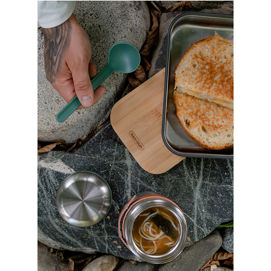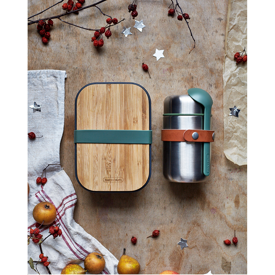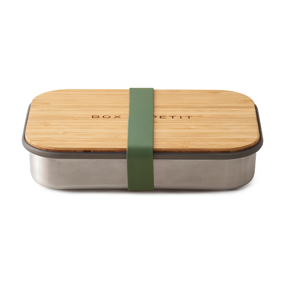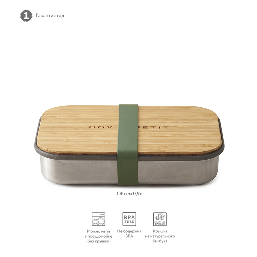 Удобная коробка для сэндвичей из нержавеющей стали, дополненная бамбуковой крышкой и силиконовой лентой оливкового цвета. Коробка подходит для хранения как уже готовых сэндвичей, так и отдельных продуктов, входящих в их состав. Антибактериальные свойства бамбука позволяют использовать крышку коробки в качестве разделочной доски, на которой блюдо можно приготовить непосредственно перед подачей. Корпус бокса выполнен из нержавеющей стали, он сохранит свой внешний вид даже в сложных условиях эксплуатации. Силиконовая лента-перетяжка герметично зафиксирует крышку. Она легко моется и также очень долговечна. Сэндвич-бокс Black+Blum – удобное решение для тех, кто покупным предпочитает свежие сэндвичи из-под ножа. Самые оригинальные ингредиенты теперь можно взять с собой и приготовить изысканный деликатес в любом удобном месте: в офисе, школе, университете или прямо на траве во время пикника. Красивый и стильный он выделит своего обладателя из толпы и покажет его как человека, разбирающегося в хорошем дизайне. Основой же этих преимуществ станет высокое качество материалов, благодаря которому сэндвич-бокс прослужит долгие годы.