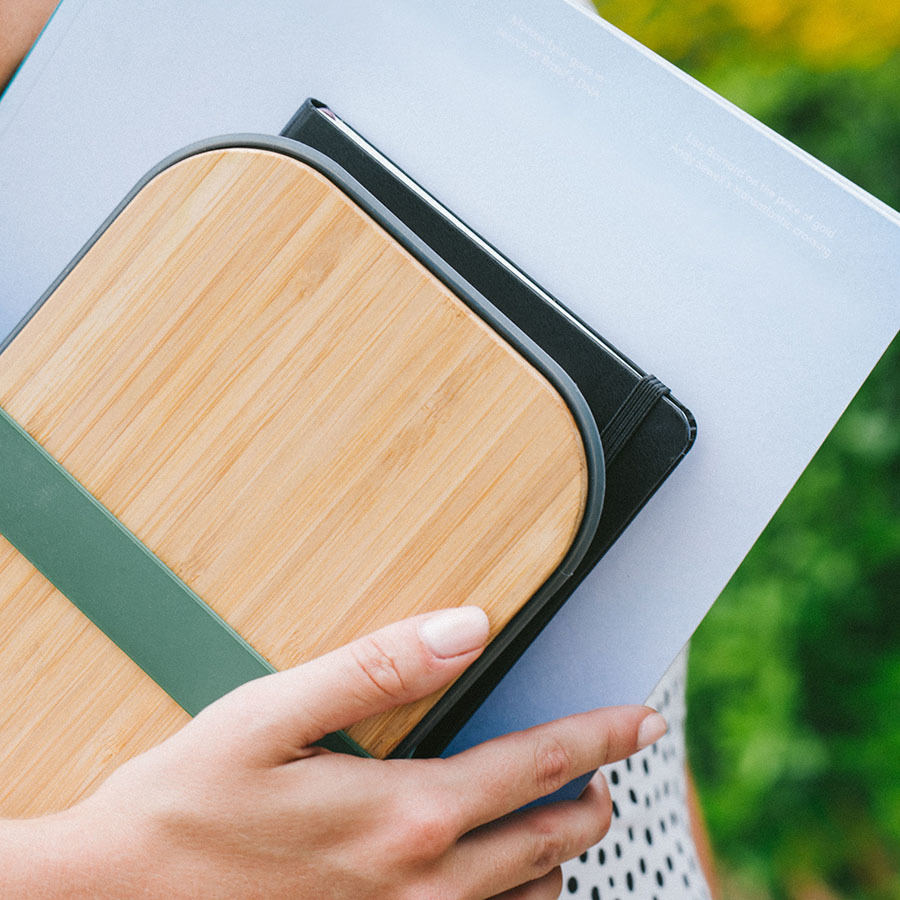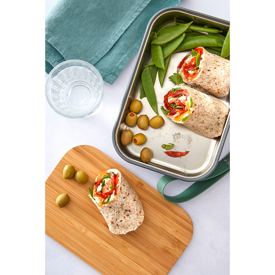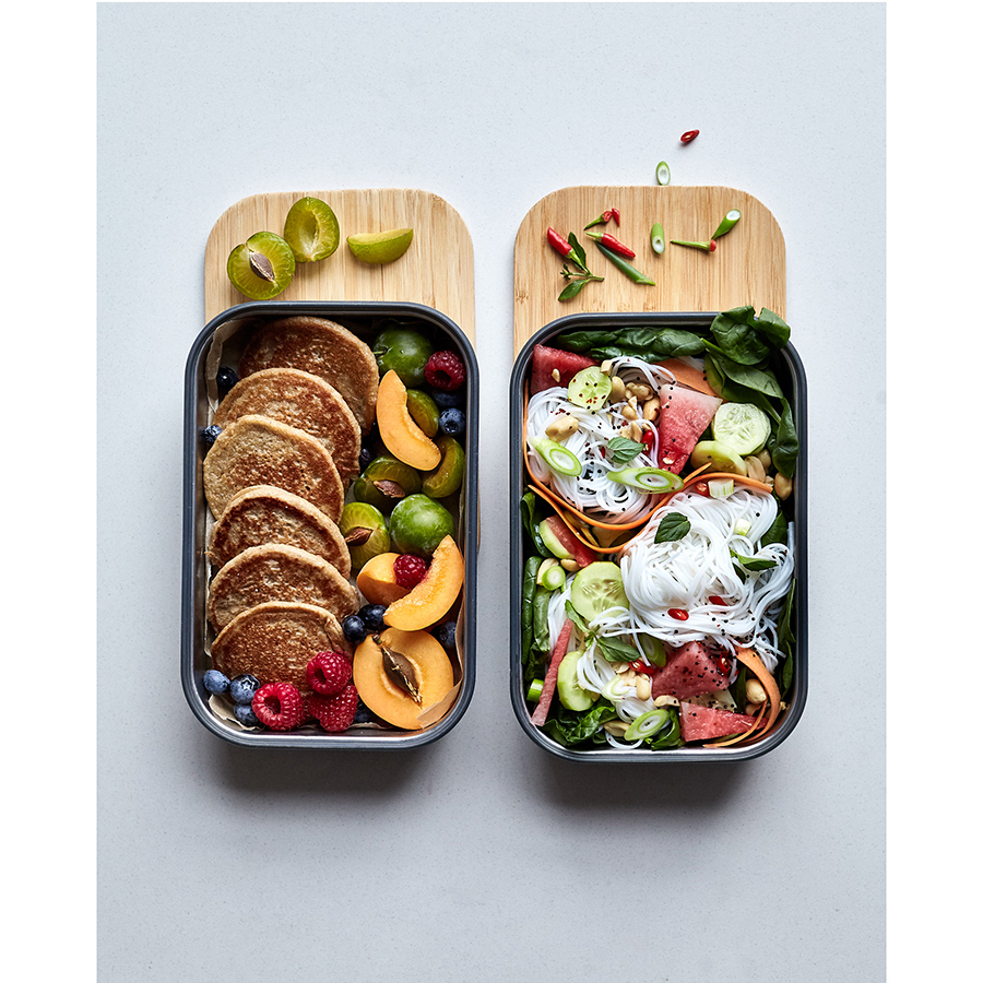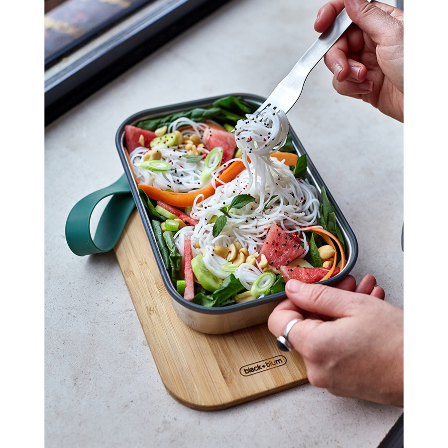 Удобная коробка для сэндвичей из нержавеющей стали, дополненная бамбуковой крышкой и силиконовой лентой оливкового цвета. Коробка подходит для хранения как уже готовых сэндвичей, так и отдельных продуктов, входящих в их состав. Антибактериальные свойства бамбука позволяют использовать крышку коробки в качестве разделочной доски, на которой блюдо можно приготовить непосредственно перед подачей. Корпус бокса выполнен из нержавеющей стали, он сохранит свой внешний вид даже в сложных условиях эксплуатации. Силиконовая лента-перетяжка герметично зафиксирует крышку. Она легко моется и также очень долговечна. Сэндвич-бокс Black+Blum – удобное решение для тех, кто покупным предпочитает свежие сэндвичи из-под ножа. Самые оригинальные ингредиенты теперь можно взять с собой и приготовить изысканный деликатес в любом удобном месте: в офисе, школе, университете или прямо на траве во время пикника. Красивый и стильный он выделит своего обладателя из толпы и покажет его как человека, разбирающегося в хорошем дизайне. Основой же этих преимуществ станет высокое качество материалов, благодаря которому сэндвич-бокс прослужит долгие годы.