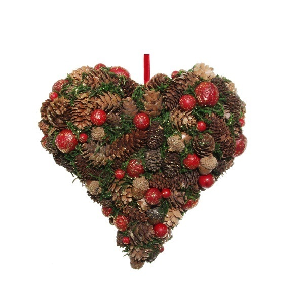 Сердце из шишек и желудей 22 см