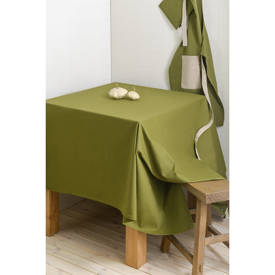 Скатерть из хлопка оливкового цвета из коллекции Essential станет центральным элементом сервировки стола. Модель выполнена из прочного, экологически чистого хлопка. Износостойкий материал не деформируется после множества стирок. Однотонное изделие органично впишется в любой современный стиль.