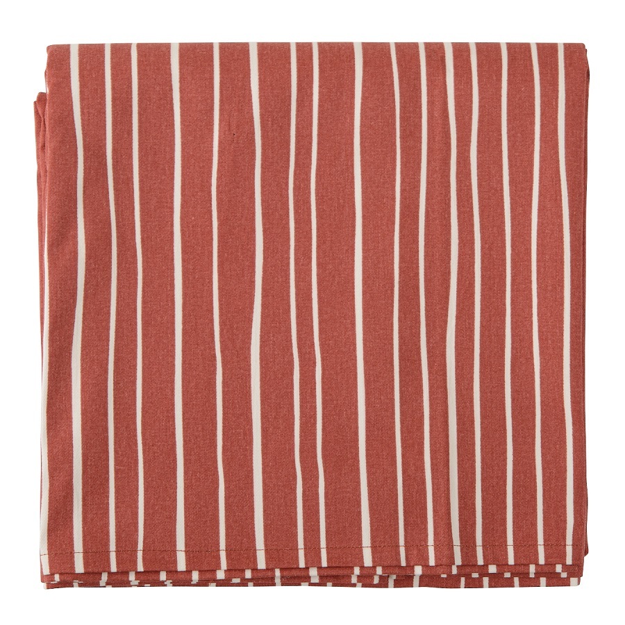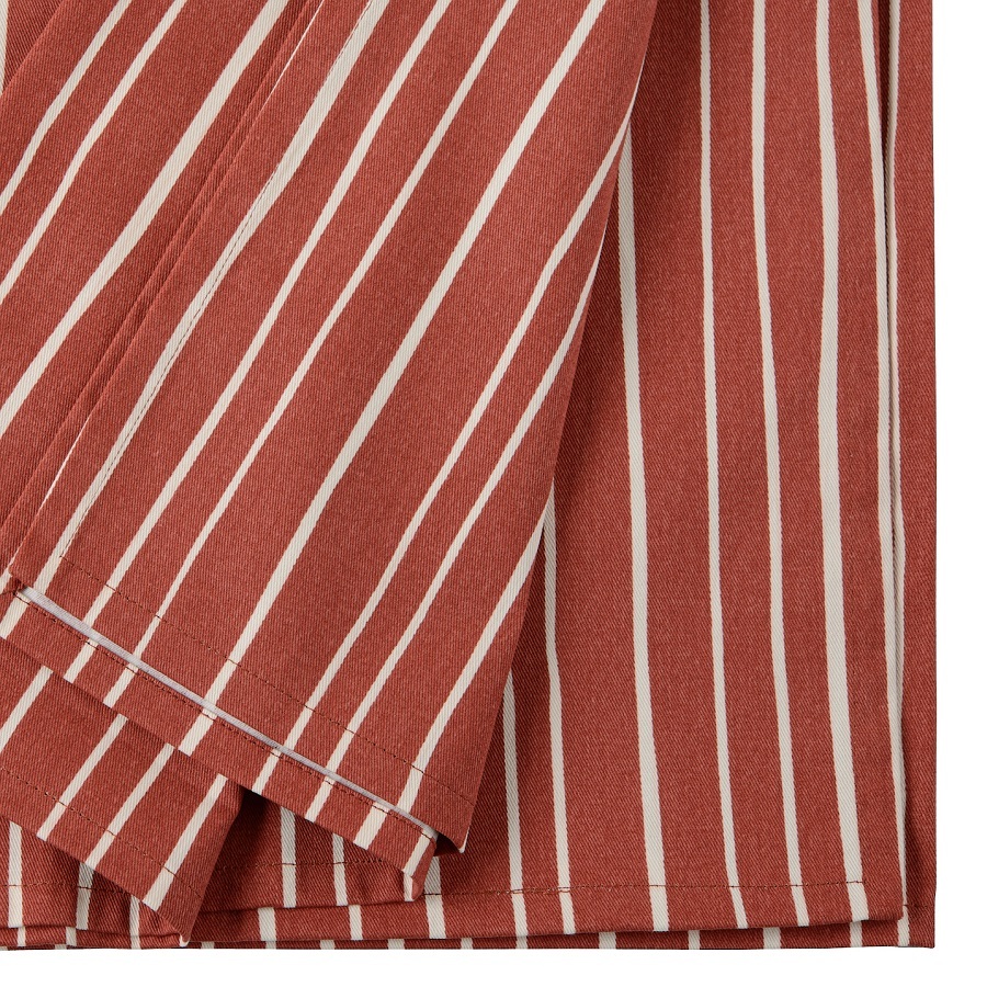 Скатерть из хлопка терракотового цвета с принтом Полоски из коллекции Prairie станет центральным элементом сервировки стола. Терракотовый цвет легко сочетать с другим кухонным текстилем, а светлая полоска разбавит однотонные изделия. Модель выполнена из прочного, экологически чистого хлопка. Износостойкий материал хорошо впитывает влагу и не деформируется даже после множества стирок. Тип плетения: твил. Плотность ткани - 215GSM.