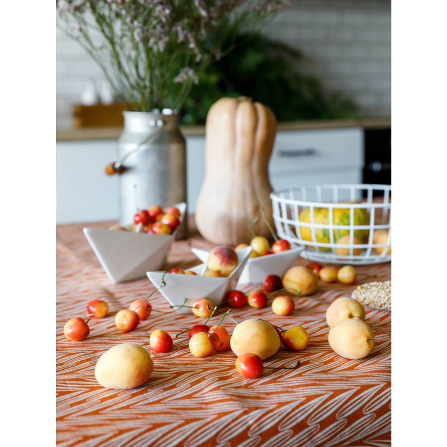 Скатерть на стол из хлопка с графичным принтом «Колосья» – изысканное и практичное украшение праздничного стола. За счет элегантного дизайна изделие органично впишется в любой современный интерьер. Материал – экологически чистый хлопок. Оформление проработано таким образом, чтобы максимально сохранить природные мотивы в узоре и натуральные цвета. Изделие органично впишется как в классический, так и в современные скандинавские интерьерные стили и минимализм.Тип плетения: кулирка. Плотность ткани - 290GSM. Размер: 150х250 см ! Максимальная температура стирки 40° C ! Гладить при максимальной температуре 150° C ! Возможна барабанная сушка при низкой температуре ! Не отбеливать ! Возможна сухая чистка