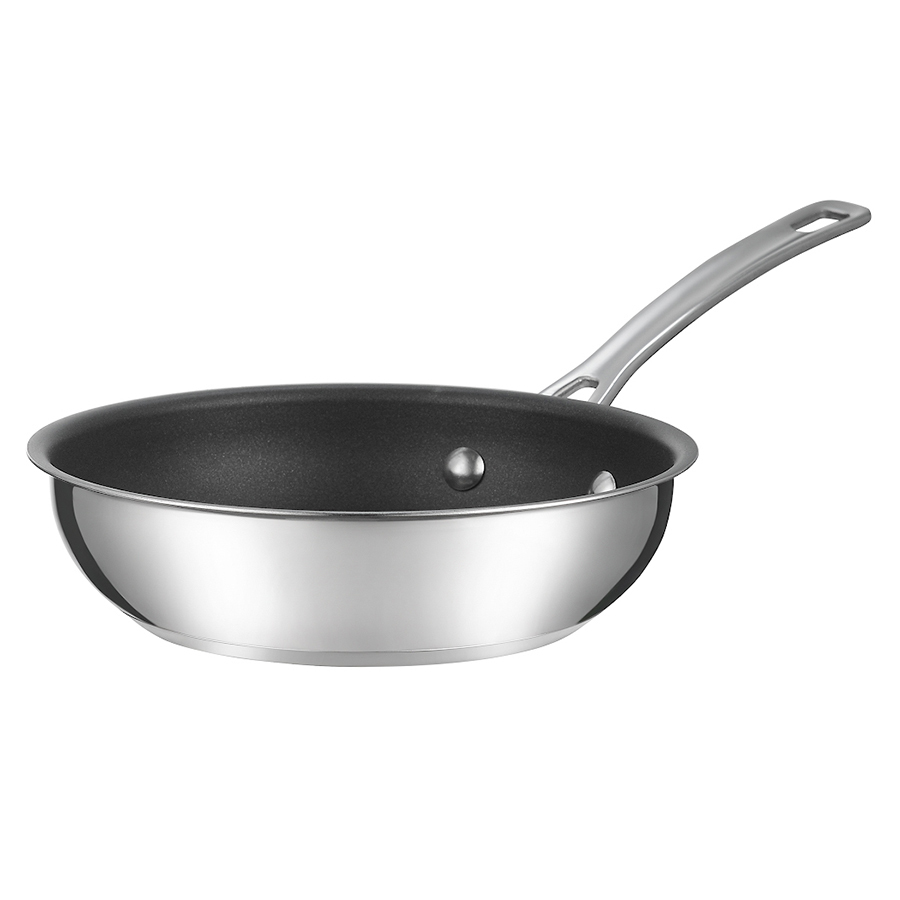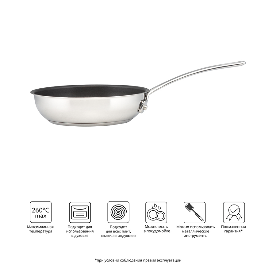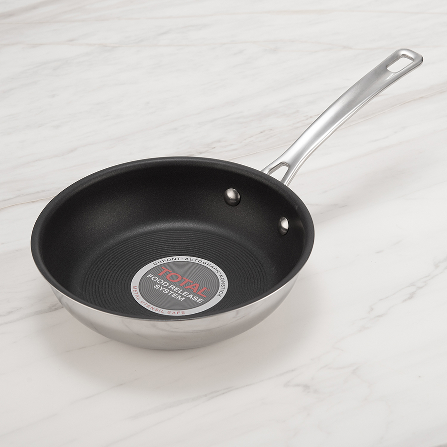 Сковорода создана для приготовления небольших порций любимых блюд. С её помощью можно с лёгкостью приготовить яичницу, омлет или блинчики на завтрак. Эти и другие блюда сохранят все полезные и вкусовые качестве во время приготовления благодаря уникальной технологии бренда Circulon. Удобная ручка не нагревается во время готовки. Genesis — коллекция кастрюль и сковород, которые незаменимы на любой кухне. Это идеальное сочетание надёжности и эргономичности. Посуда выполнена из нержавеющей стали с внутренним слоем из алюминия. Поверхность дна оснащена 2 дополнительными слоями: из алюминия и нержавеющей стали. 3-х слойная технология способствует равномерному распределению жара по всей поверхности. С посудой Circulon легко и приятно готовить полезные блюда даже начинающим кулинарам. Особенности: - подходят крышки диаметром 20-21 см - диаметр дна 14,5 см - выдерживает температуру до 260° - надёжное 3-слойное антипригарное покрытие - можно мыть в посудомоечной машине - подходит для любых видов плит - допускается умеренное использование металлических лопаток и ложек Запатентованная технология TOTAL® обеспечивает отличные антипригарные свойства и долгий срок службы. Внутри посуда покрыта 3-слойным антипригарным покрытием, которое не содержит PFOA и устойчиво к повреждениям даже от металлических кухонных инструментов. Кольцевое рифление на дне обеспечивает дополнительный антипригарный эффект: площадь прилипания у такой поверхности меньше. Не рекомендуется перегревать сковородку и долго готовить на высоких температурах, превышающих температурные ограничения - это повреждает антипригарное покрытие и делает его уязвимым к повреждениям. В процессе эксплуатации допускается умеренное использование металлических инструментов. Но при этом не рекомендуется прилагать чрезмерные усилия, например: резать ножом или усиленно чистить металлическими губками. Технические характеристики: - толщина стенок: 0,6 мм - толщина дна: 4,9 мм - высота стенок: 5 см - диаметр дна: 14,5 см