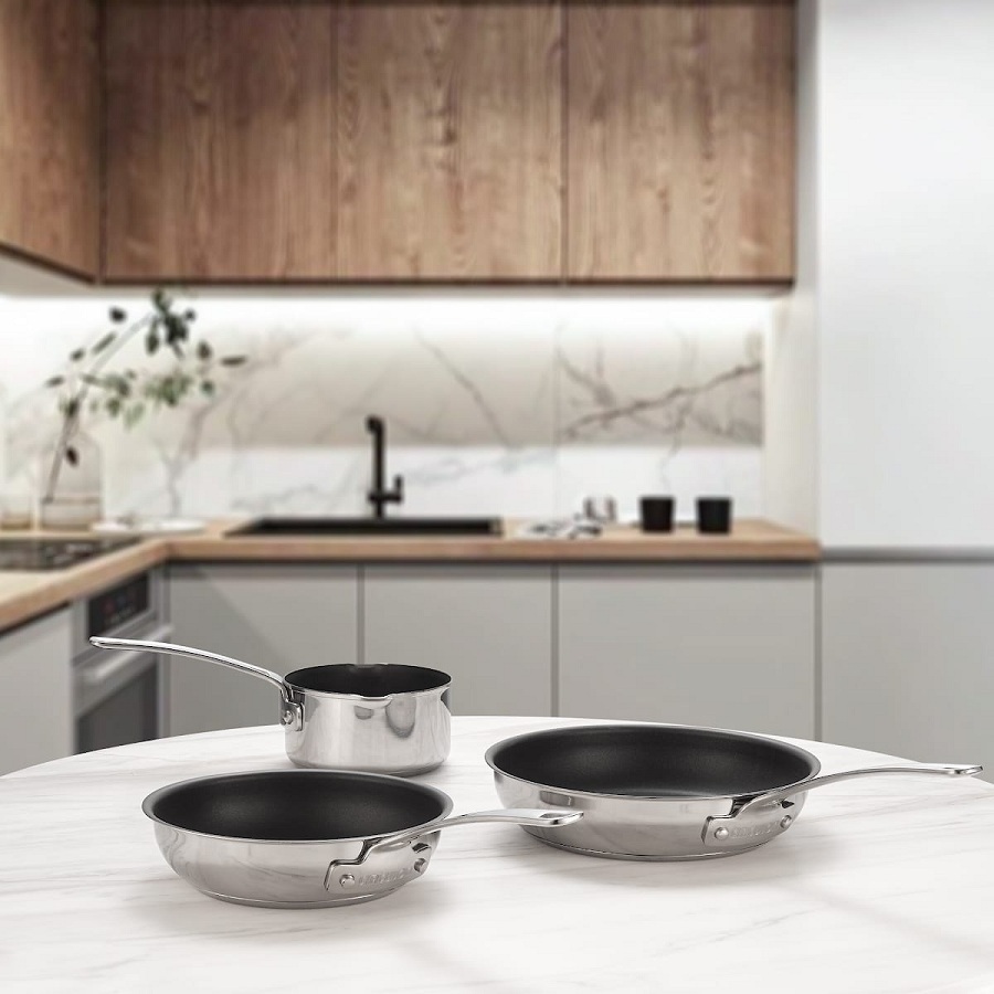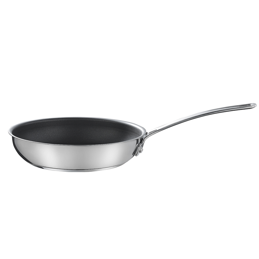 Сковорода создана для приготовления любых блюд из овощей, мяса, птицы. Ризотто, фритатта, овощное или мясное рагу, фрикасе из курицы и другие изысканные блюда сохранят все полезные и вкусовые качестве во время приготовления благодаря уникальной технологии бренда Circulon. Удобная ручка не нагревается во время готовки. Genesis — коллекция кастрюль и сковород, которые незаменимы на любой кухне. Это идеальное сочетание надёжности и эргономичности. Посуда выполнена из нержавеющей стали с внутренним слоем из алюминия. Поверхность дна оснащена 2 дополнительными слоями: из алюминия и нержавеющей стали. 3-х слойная технология способствует равномерному распределению жара по всей поверхности. С посудой Circulon легко и приятно готовить полезные блюда даже начинающим кулинарам. Особенности: - подходят крышки диаметром 24 см - выдерживает температуру до 260° - надёжное 3-слойное антипригарное покрытие - можно мыть в посудомоечной машине - подходит для любых видов плит - допускается умеренное использование металлических лопаток и ложек Запатентованная технология TOTAL® обеспечивает отличные антипригарные свойства и долгий срок службы. Внутри посуда покрыта 3-слойным антипригарным покрытием, которое не содержит PFOA и устойчиво к повреждениям даже от металлических кухонных инструментов. Кольцевое рифление на дне обеспечивает дополнительный антипригарный эффект: площадь прилипания у такой поверхности меньше. Не рекомендуется перегревать посуду и долго готовить на высоких температурах, превышающих температурные ограничения - это повреждает антипригарное покрытие и делает его уязвимым к повреждениям. В процессе эксплуатации допускается умеренное использование металлических инструментов. Но при этом не рекомендуется прилагать чрезмерные усилия, например: резать ножом или усиленно чистить металлическими губками. Технические характеристики: - толщина стенок: 0,6 мм - толщина дна: 4,9 мм - высота стенок: 5 см - диаметр дна: 18,5 см