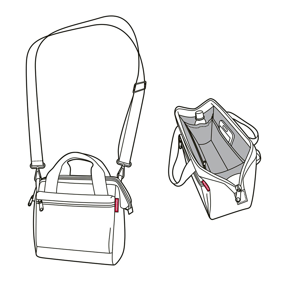 Сумка застегивается на молнию, внутрь встроены металлические скобы, фиксирующие её в открытом состоянии. Внутри расположены 3 кармашка для организации вещей, один из которых закрывается на молнию. Снаружи – 2 удобных кармана на молнии. Две удобные ручки и ремень регулируемой длины позволяют носить сумку так, как вам удобно. Материал – прочный полиэстер с водоотталкивающим эффектом. Объем – 4 л.