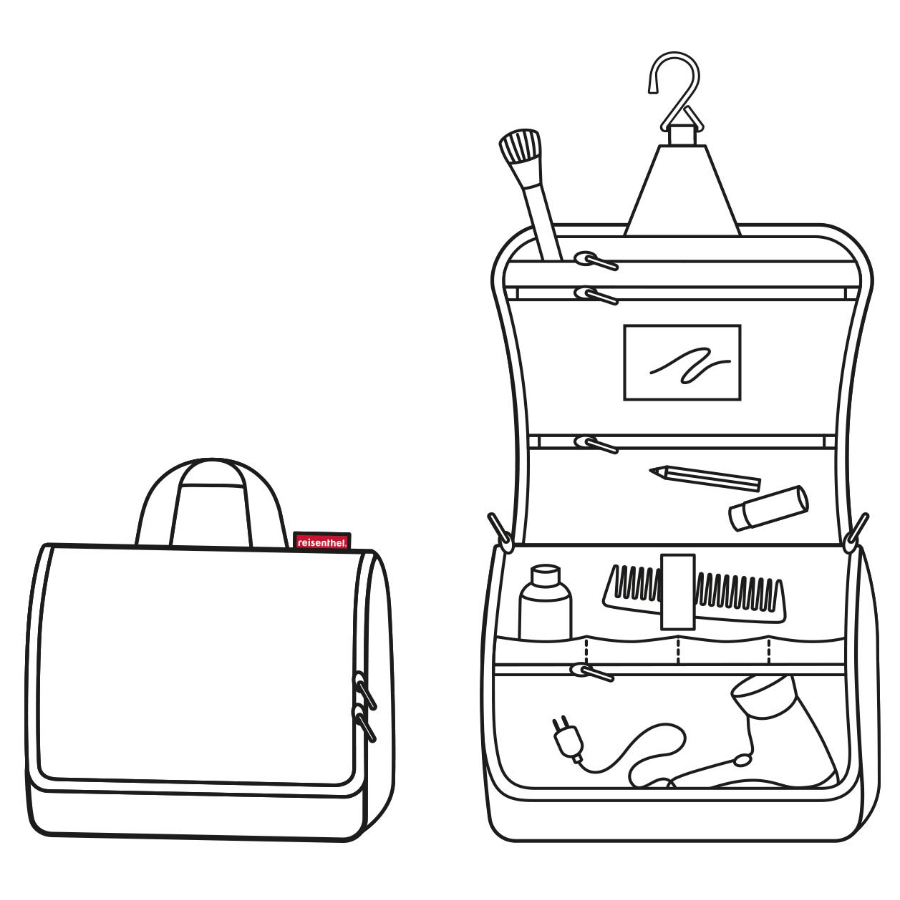 Отличная сумка для путешественников, которая позволяет взять с собой всё необходимое и даже больше. Пригодится в длительных поездках. Специальный крючок позволяет подвесить её в ванной и облегчить доступ к косметике и аксессуарам.