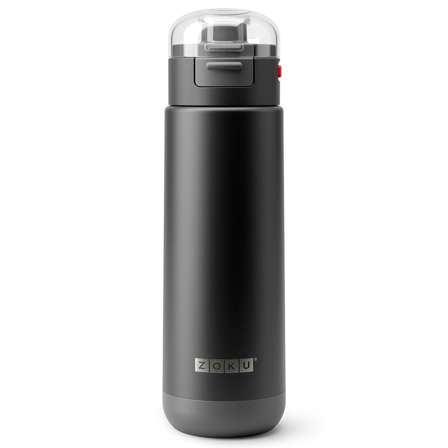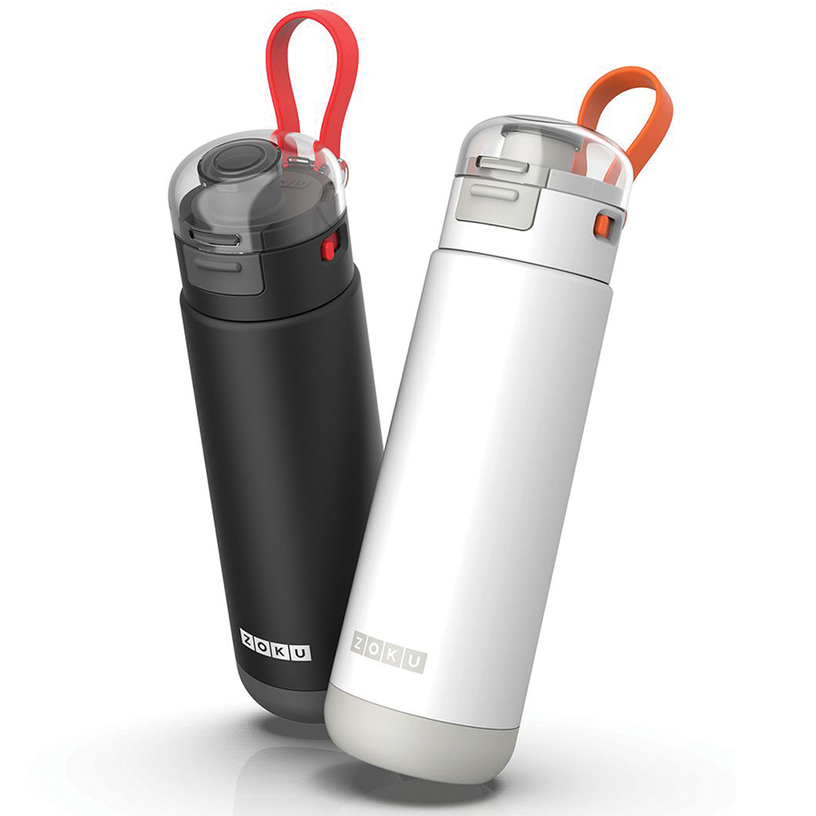 Крышка защищает отверстие для питья от загрязнений и открывается отдним нажатием на кнопку. Корпус бутылки приятен на ощупь. Ремешок обеспечивает удобство при переноске.