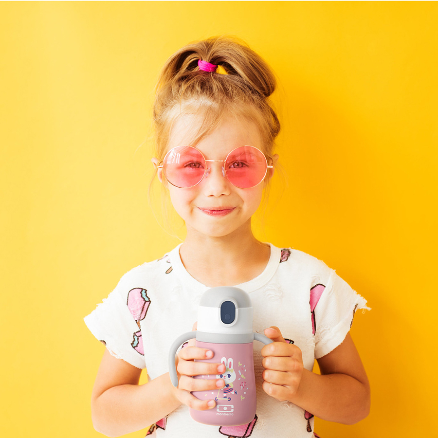 Корпус из нержавеющей стали с двоными стенками сохраняет напитки холодными до 12 часов. Крышка легко открывается одним нажатием. Соломинка снимается для чистки. Специальные ручки и ремешок обеспечивают удобство во время питья и переноски. Подходит только для холодных напитков. Материал не содержит бисфенол-А. Модель соответствует международным стандартам качества и подходит для детей старше 4 лет.