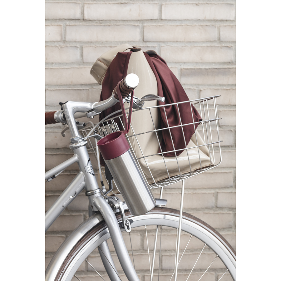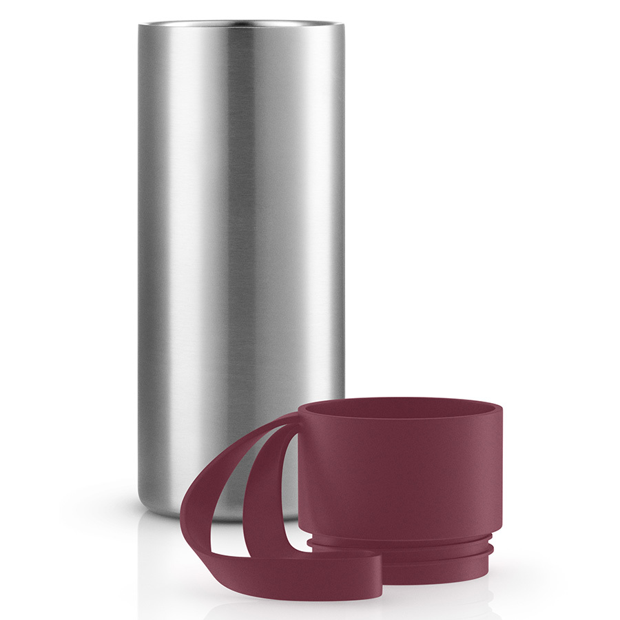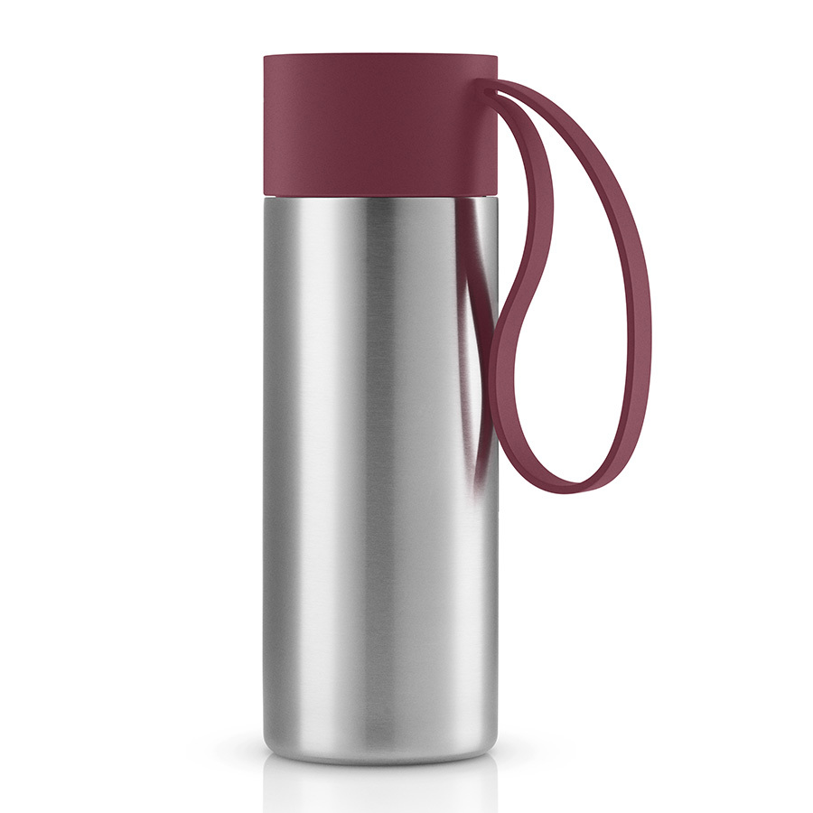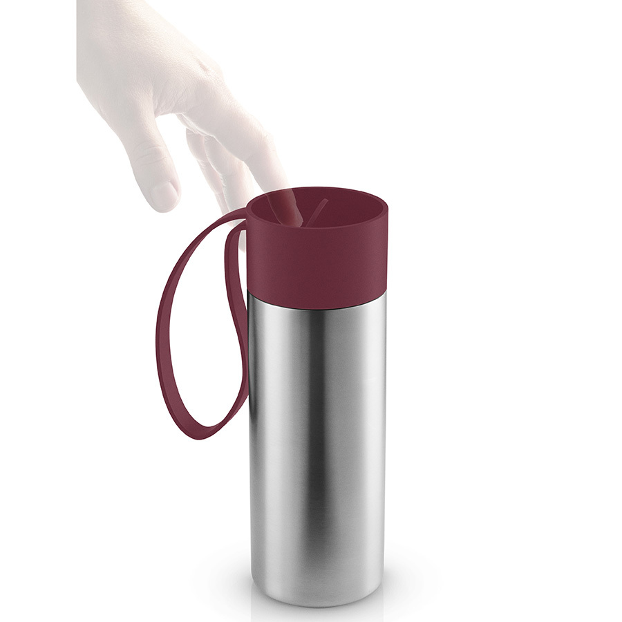 Крышка легко открывается и закрывается даже на ходу, благодаря функциональному клапану. Корпус с двойными стенками надолго сохранит нужную температуру напитков. Практичный силиконовый ремешок удобен для переноски.