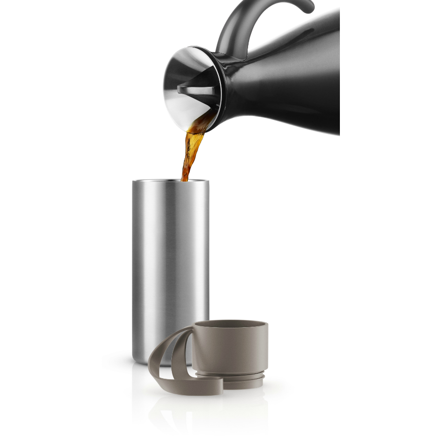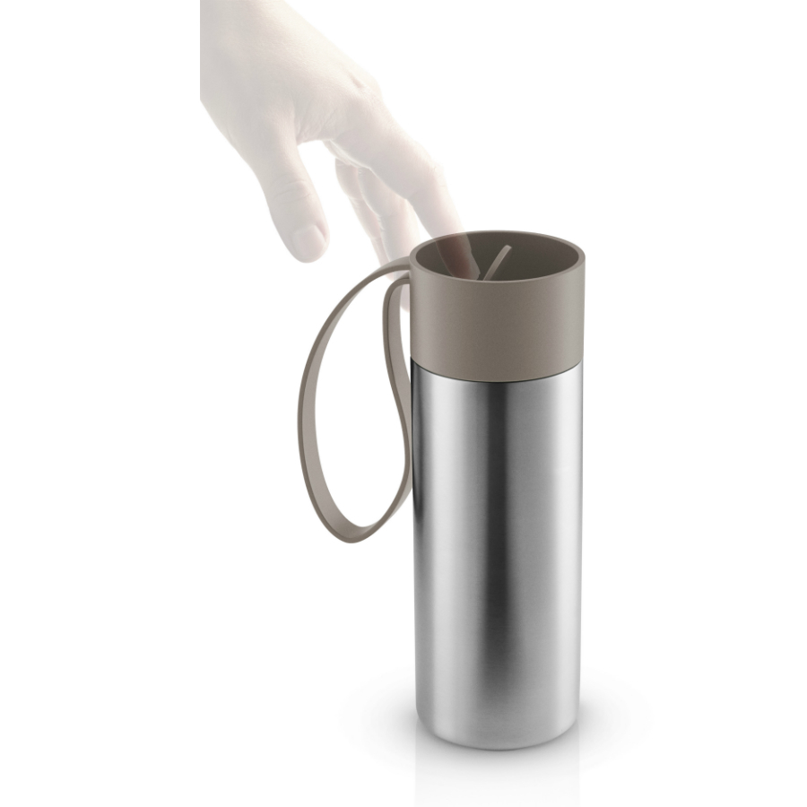 Стильный термос для прогулок по городу или долгих поездок. Крышка легко открывается и закрывается даже на хoду благодаря функциональному клапану, с которым легко справиться одной рукой. Двойные герметичные стенки долго сохраняют нужную температуру напитка. Практичный силиконовый ремешок - для того, чтобы термос было удобно носить. Можно мыть в посудомоечной машине.